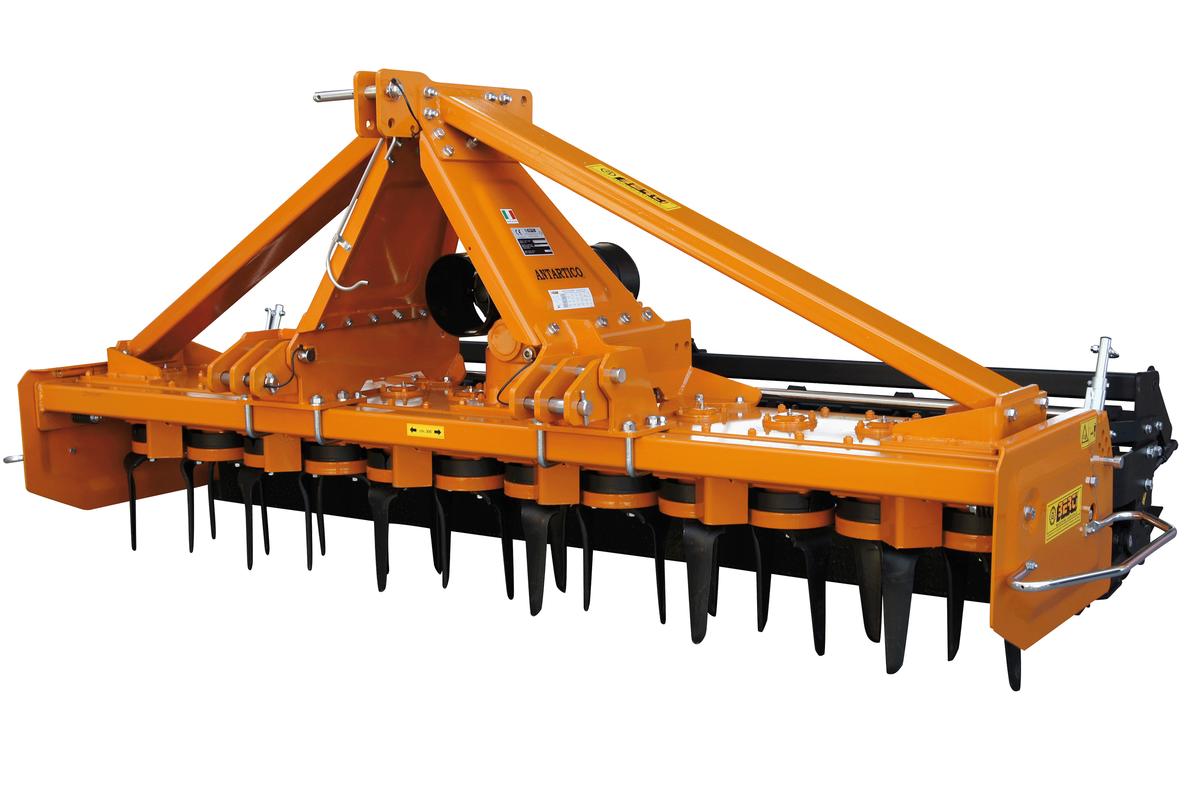 | Erpice rotante con cambio di velocità per trattori da 100 a 180 HP. Attrezzatura robusta, ideale per la preparazione del terreno per la semina nel campo dell’agricoltura professionale. |