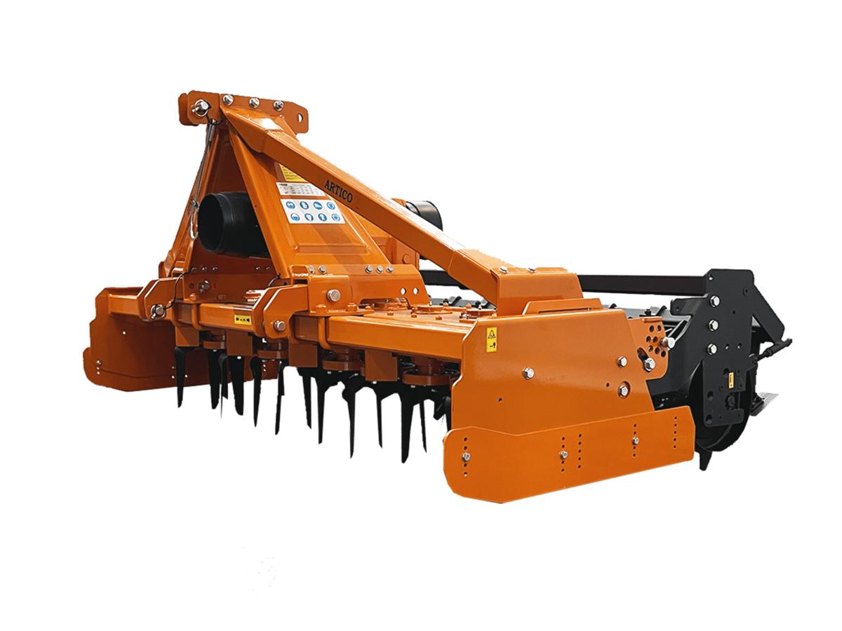 | Erpice rotante con cambio di velocità per trattori da 80 a 120 HP. Ideale per la preparazione del terreno per la semina nel campo dell’agricoltura professionale. |