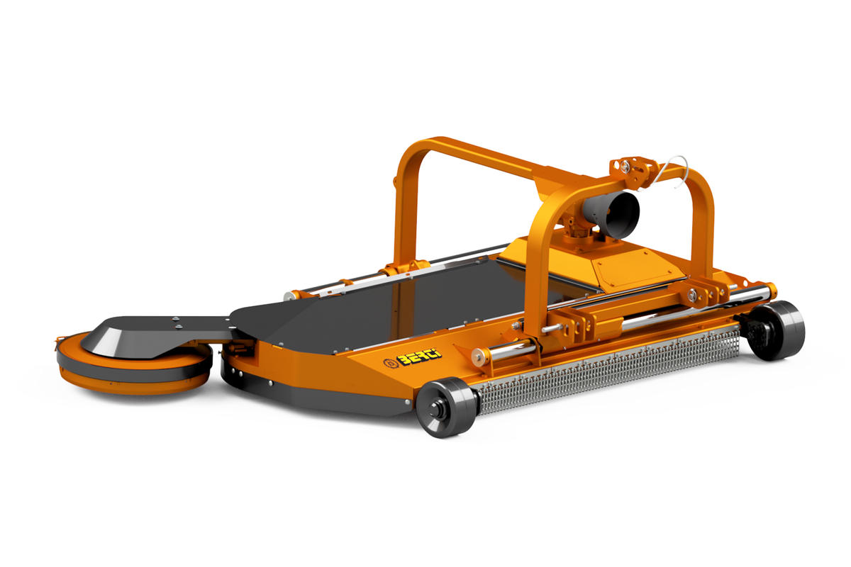 Falciatrice spostabile per erba con disco interfilare girevole, per l'impiego agricolo su vigneti e frutteti in genere, da applicare su trattori con potenza compresa tra 40 e 100 HP. |