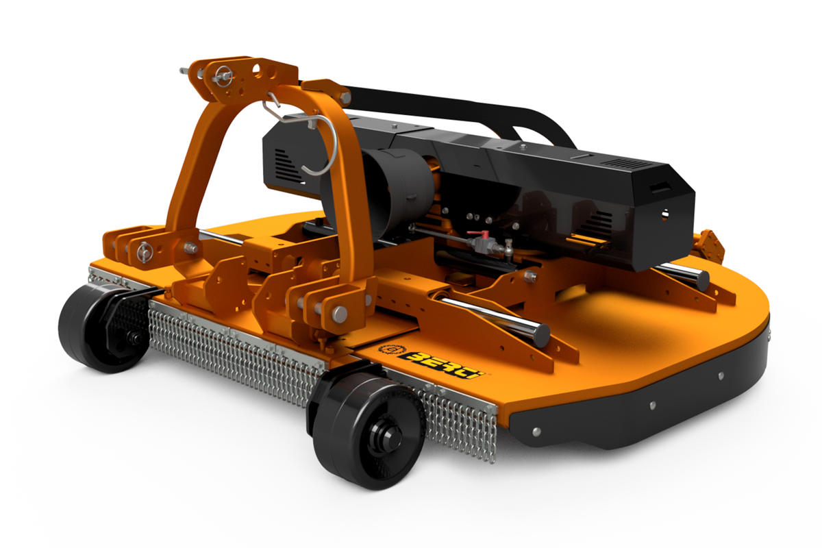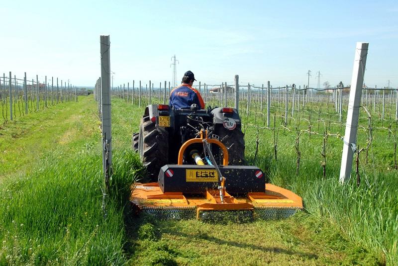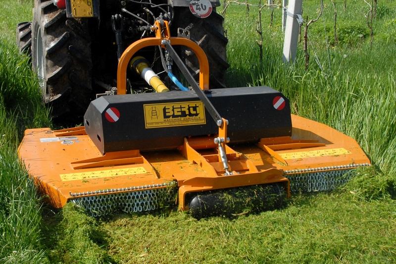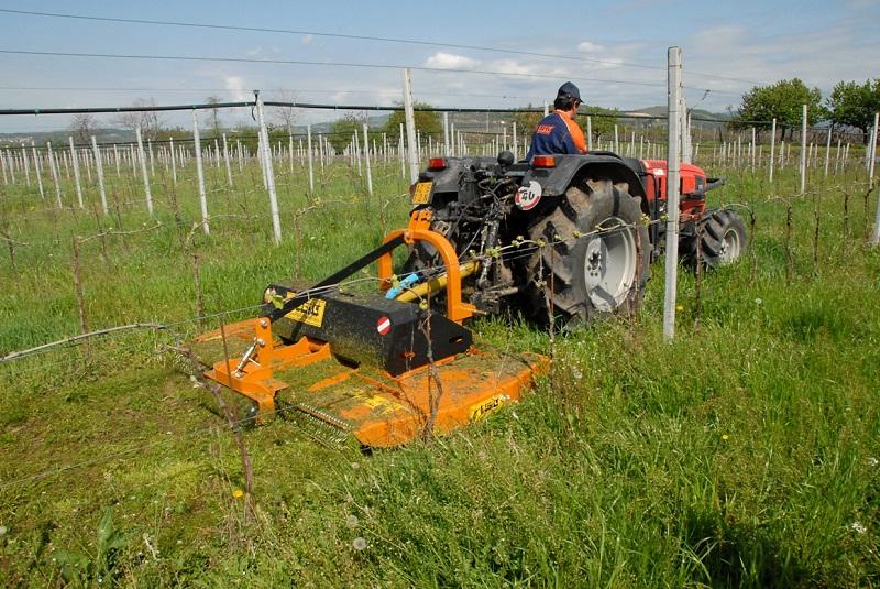 Falciatrice a larghezza variabile per erba, di tipo portato per l'impiego agricolo su vigneti e frutteti in genere, da applicare su trattori con potenza compresa tra 40 e 100 HP. La larghezza di lavoro viene regolata idraulicamente per adattare la macchina ai filari di larghezze diverse. La trasmissione è completamente meccanica, composta da tre scatole ad ingranaggi che trasmettono il moto ai coltelli di tipo snodato. Questi garantiscono un taglio perfetto grazie alla massima intersecazione e contro rotazione dei rotori. Con le ruote anteriori ed il rullo posteriore è possibile regolare l’altezza di taglio ottenendo così la massima adattabilità in qualsiasi terreno. |