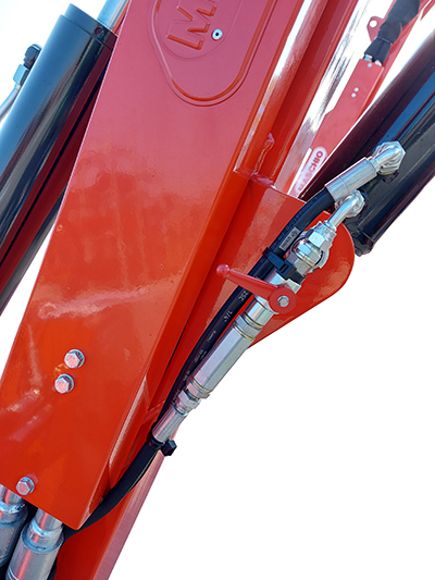 | SISTEMA DI SICUREZZA IDROPNEUMATICO | Una doppia sicurezza interviene quando il braccio incontra un ostacolo: la prima protezione è costituita da un ammortizzatore ad accumulatore di azoto. Se questo non è sufficiente una valvola di massima permette di far ruotare il braccio all’indietro di 90°. |