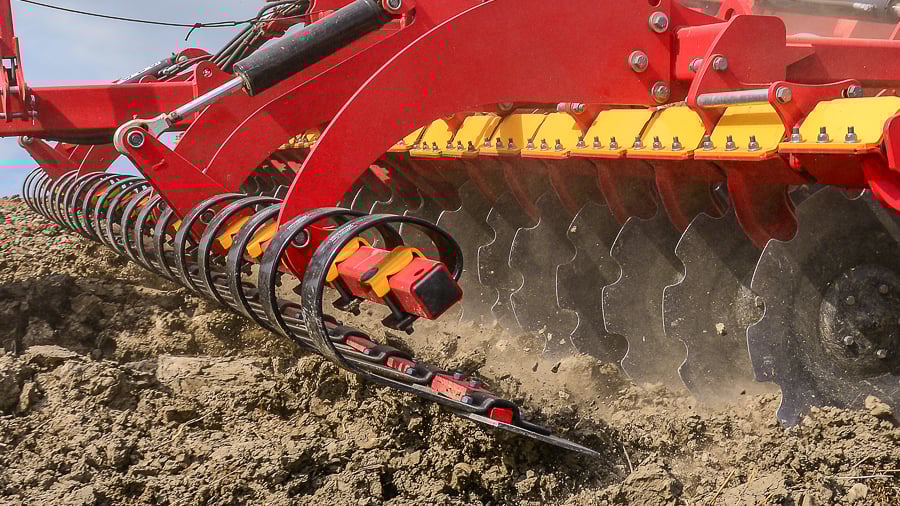 - In confronto, il disco da 510 mm ha una maggiore luce libera sopra al disco per un miglior flusso interno di residuo colturale.