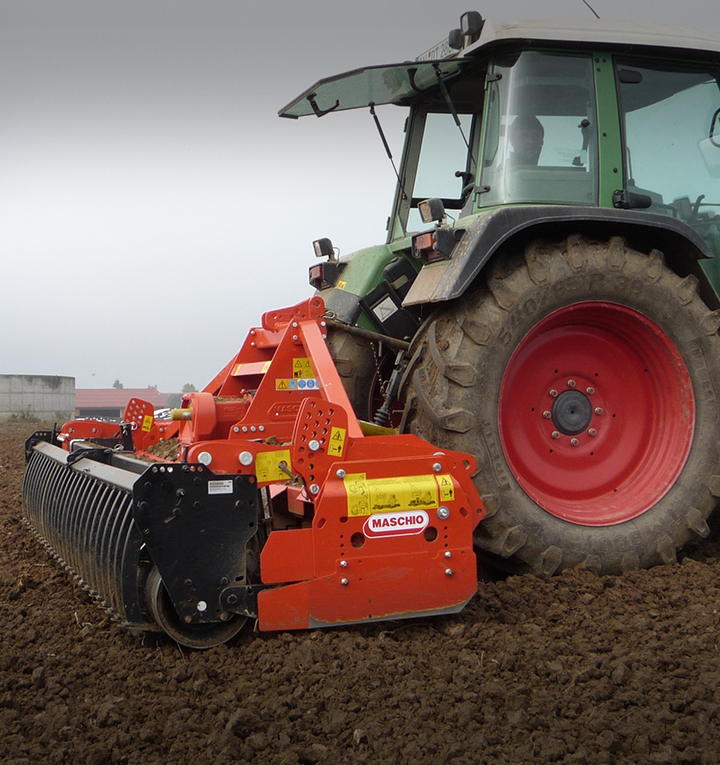 | La particolare posizione dei rotori con angolazioni diversificate permette un'entrata graduale nel terreno riducendo la potenza assorbita, i consumi e le vibrazioni trasmesse al trattore. Ne consegue una maggiore durata delle componenti e una minore manutenzione. |