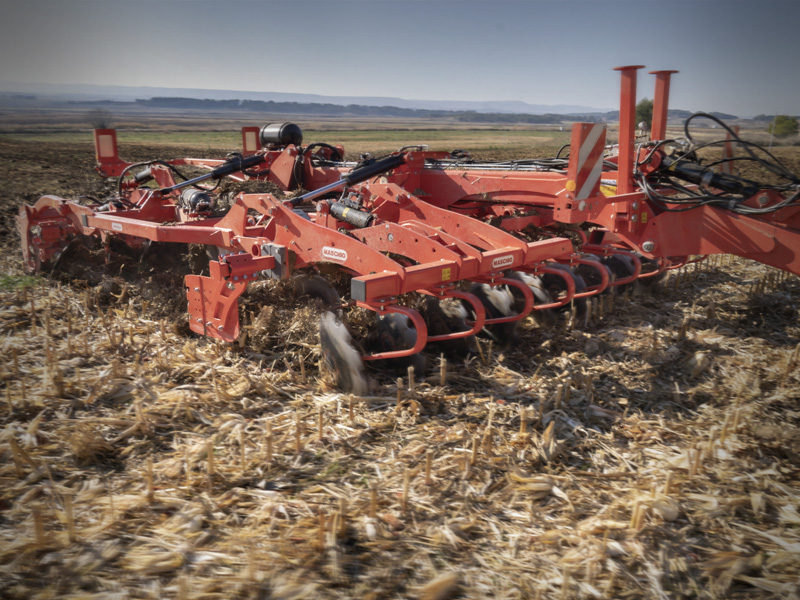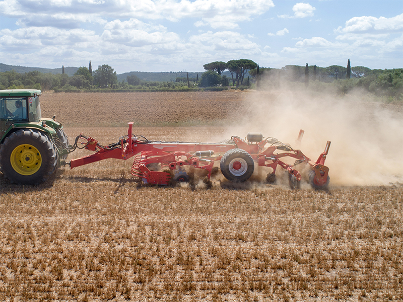| La perfetta sovrapposizione di dischi di grande diametro e ancore garantisce una lavorazione uniforme su tutta la larghezza di lavoro. Dischi e ancore sono disposte in modo equidistante. |