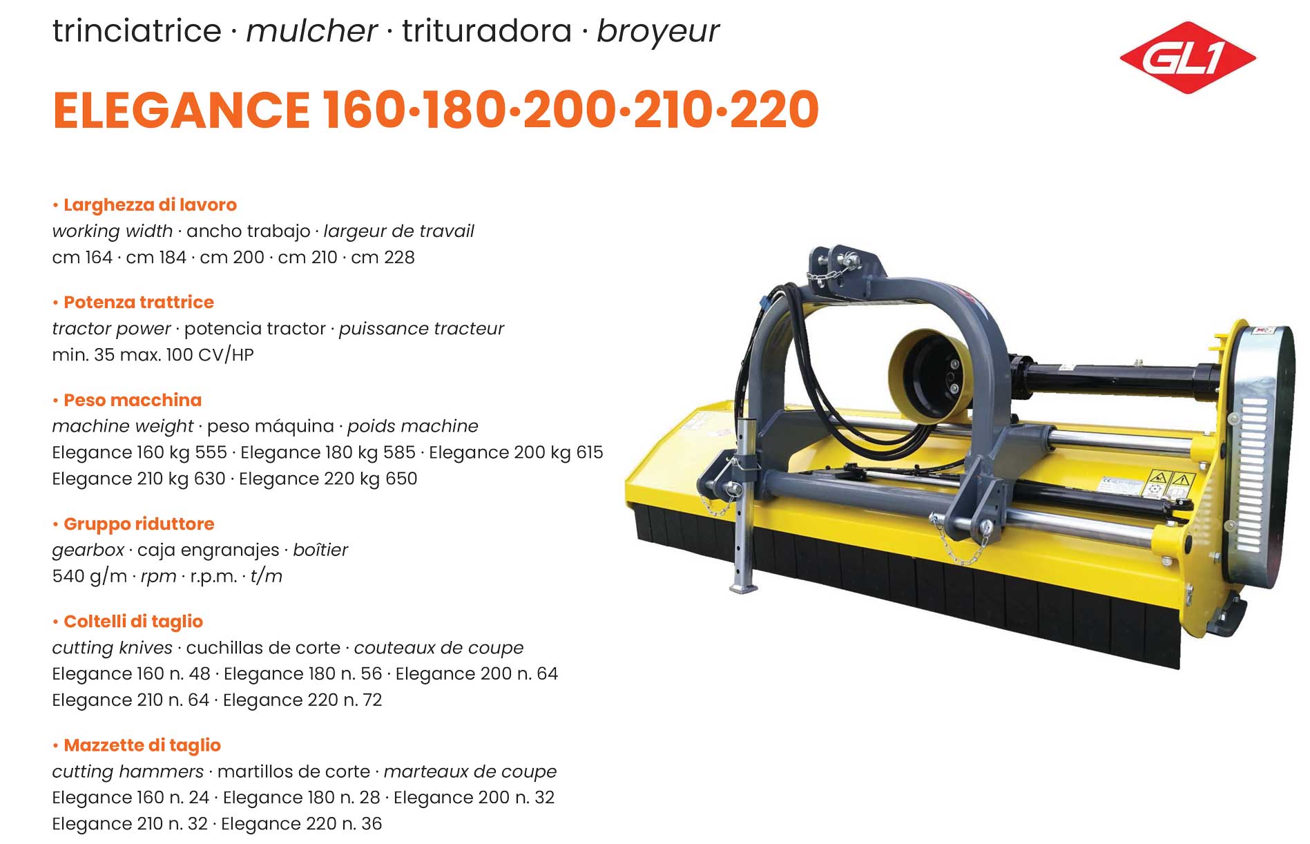Trattori con potenza da/a: 35 ÷ 100 CV Larghezza di taglio: 164 – 184 – 200 – 210 – 228 CM Peso: 555 – 585 – 615 – 630 – 650 KG |