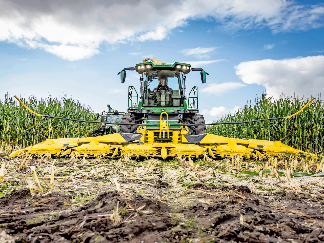 | La regolazione automatica della velocità di avanzamento consente l’adattamento alla quantità di raccolto, garantendo prestazioni ottimali in qualsiasi momento. La prevenzione degli intasamenti consente di spingere il motore al massimo senza preoccuparsi di blocchi nel flusso di raccolto. Con ProTouch Harvest, basta un solo pulsante a fine campo per attivare sequenze completamente automatizzate. E grazie al comando Active Fill Control, ogni rimorchio viene riempito in modo preciso ed efficiente, automaticamente. |