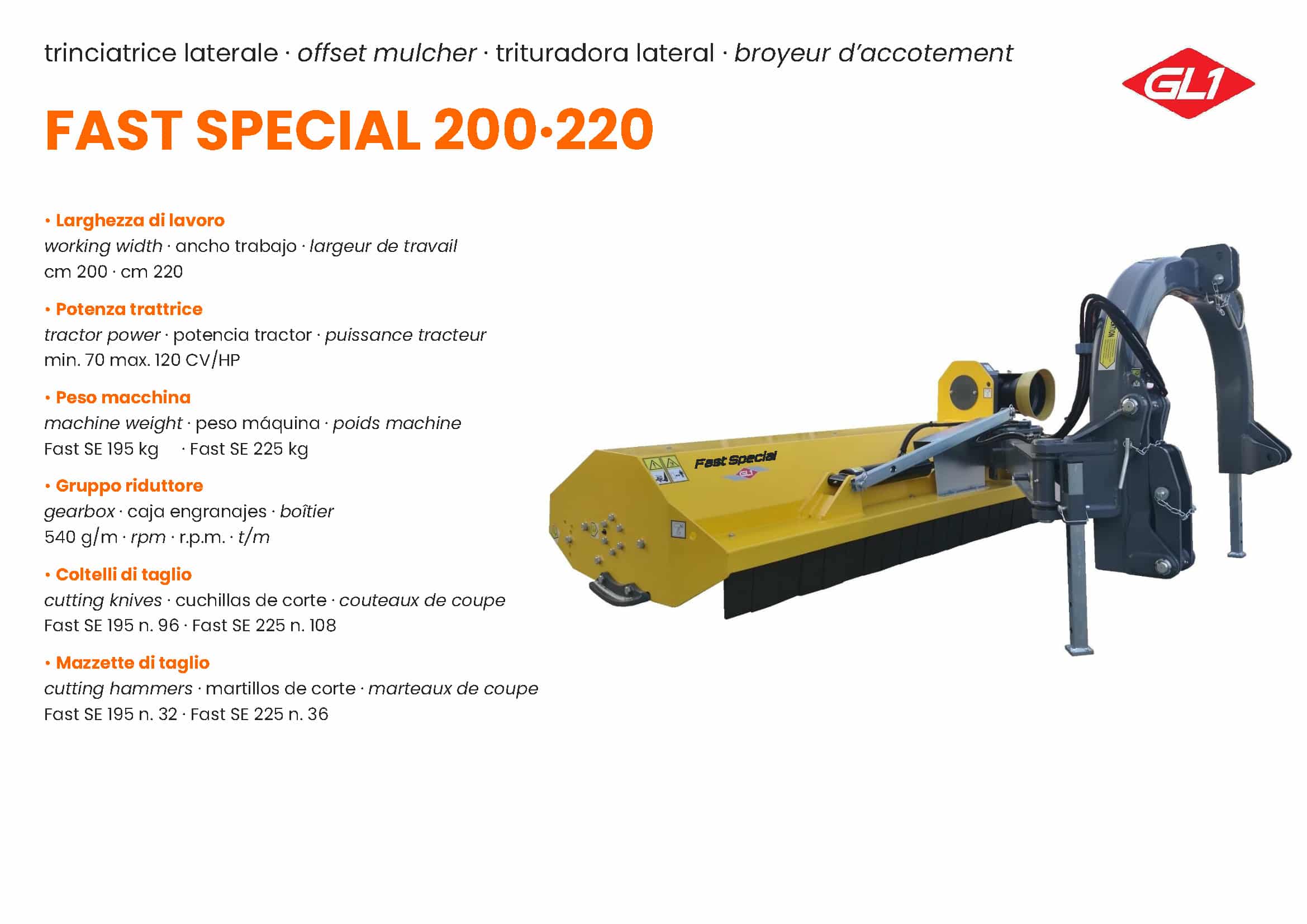 Trattori con potenza da/a: 70 ÷ 120 CV Larghezza di taglio: 220 CM Peso: 225 KG |