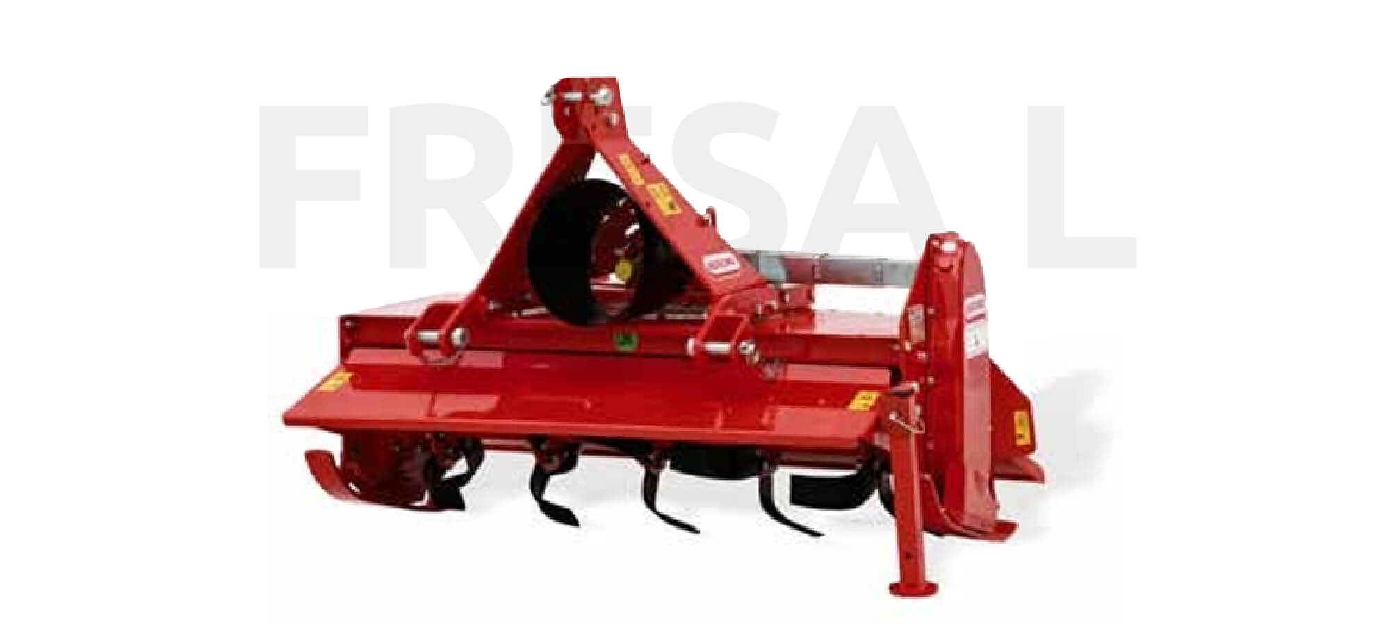 L è allestita con 4 zappe per flangia. Tale geometria la rende idonea anche in presenza di terreni umidi o parzialmente argillosi. Il cofano posteriore è più largo del rotore per garantire un pareggiamento del terreno anche nelle zone adiacenti. Tale accorgimento amplifica la larghezza di lavoro percepita. |