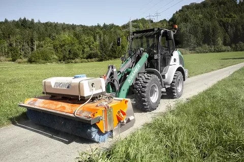 Sistema di carico lungo: è disponibile un braccio prolungato, che rende la macchina più flessibile in termini di sbraccio e altezza di sollevamento Cinematica P: combina elevate forze di sollevamento e di spinta con un’esatta guida parallela nell’intero intervallo di sollevamento Trazione: Il dispositivo di bloccaggio differenziale al 100% commutabile nell'assale anteriore consente una trazione ottimale Smart Driving: Il numero di giri del motore viene automaticamente ridotto al raggiungimento della velocità massima Sistema idraulico: L'impianto idraulico di lavoro è alimentato da potenti pompe ad ingranaggi, che consentono cicli di caricamento rapidi del sistema di ricarica Caratteristiche principali Visibilità panoramica a 360° Eccezionale visibilità panoramica grazie alle ampie superfici vetrate e ai montanti stretti della cabina Parabrezza panoramico per una visuale ottimale dell'accessorio Elevato livello di qualità e sicurezza del lavoro, grazie al fatto che l'area di lavoro può essere vista in modo ottimale Interruttori codificati a colori Combinazione di colori uniforme per funzioni idrauliche, elettriche, di guida e di sicurezza Maggiore sicurezza, il rischio di confusione degli interruttori è ridotto al minimo Concetto operativo di tutti i modelli per una facile gestione della flotta Smart Attach (attacco cambio rapido completamente idraulico) Aggancio di accessori a comando idraulico tramite collegamento automatico del circuito idraulico, senza la necessità di scendere e salire Aumento della produttività grazie al risparmio di costi e tempo Gli attrezzi possono essere sostituiti in pochi secondi per la massima flessibilità Facile accesso per la manutenzione Facile accesso al vano motore attraverso il cofano motore ad ampia apertura Ottima accessibilità di tutti i componenti importanti per il controllo dei livelli di riempimento I lavori di assistenza possono essere eseguiti rapidamente grazie ai filtri montati verticalmente e alle aperture di manutenzione supplementari Smart Driving Risparmio di carburante grazie al numero di giri del motore ridotto durante la guida alla velocità massima Alleggerimento dell’operatore grazie alla riduzione dei livelli di rumore durante la guida Protezione dei componenti e aumento della durata di vita grazie al numero di giri ridotto |
