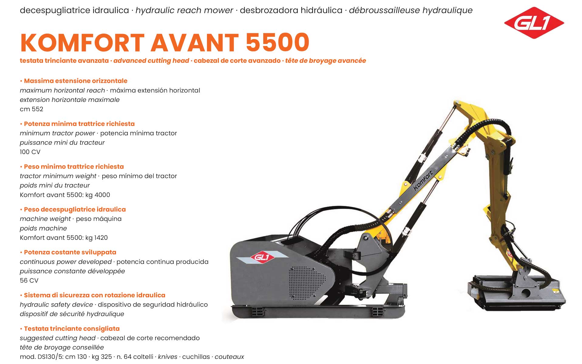 Trattori con potenza da/a: 100 CV Estensione massima: 552 CM Peso: 1420 KG |