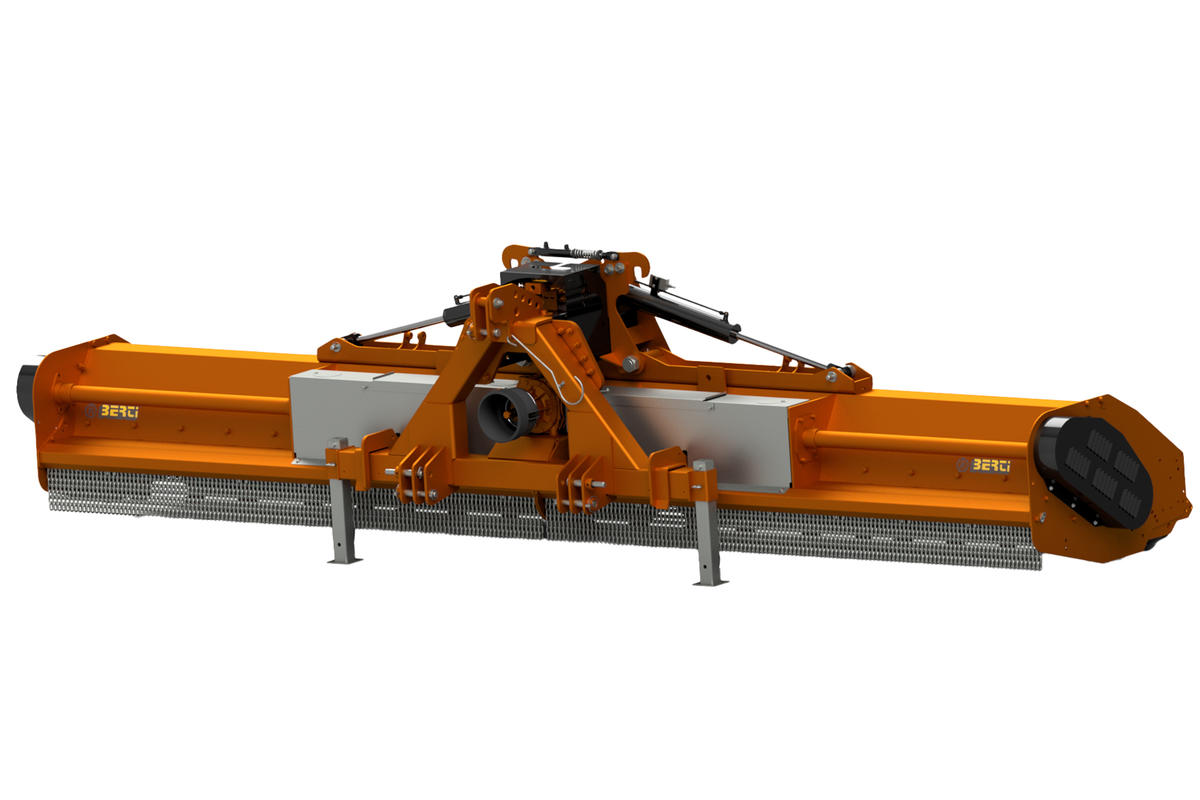 Trincia Berti pieghevole da applicare a trattori con potenza compresa tra 90 e 300 CV. È consigliata per stocchi di mais, sorgo, cotone, erba, paglia, foglie di patate, foglie di barbabietola, canne da zucchero e per la manutenzione di terreni incolti. |