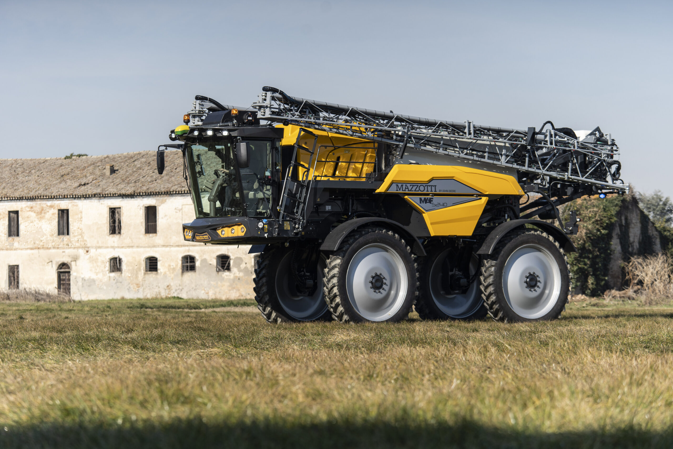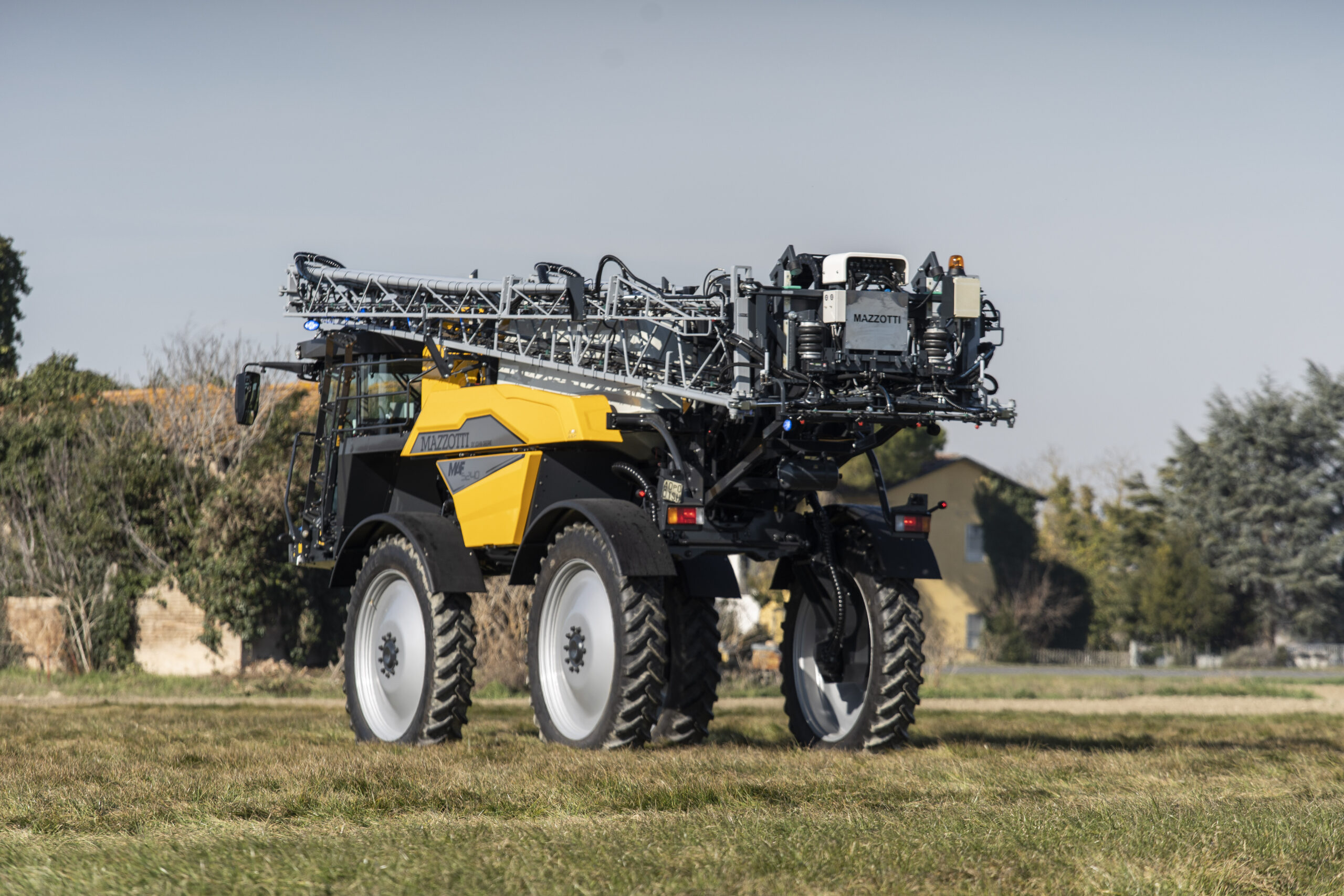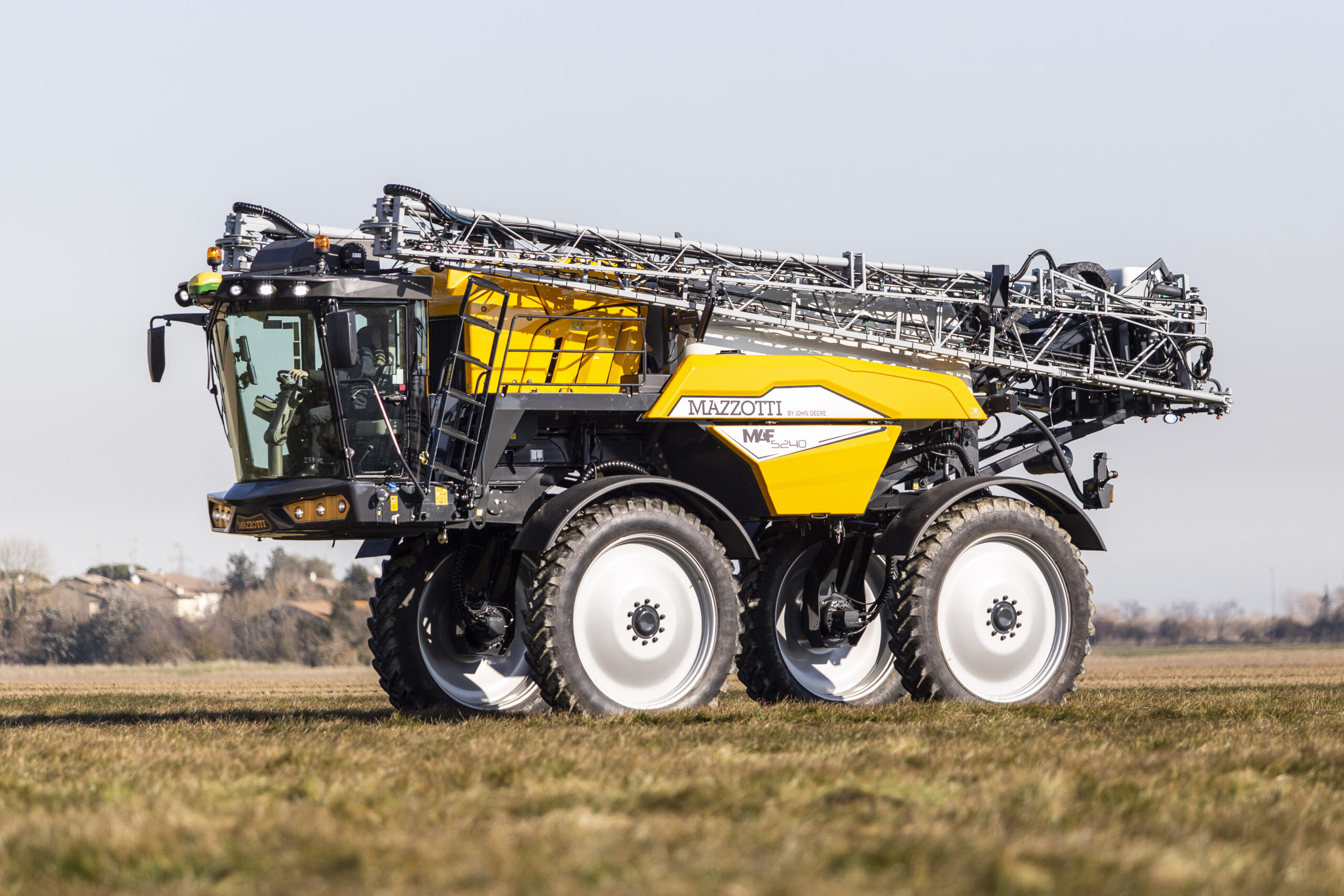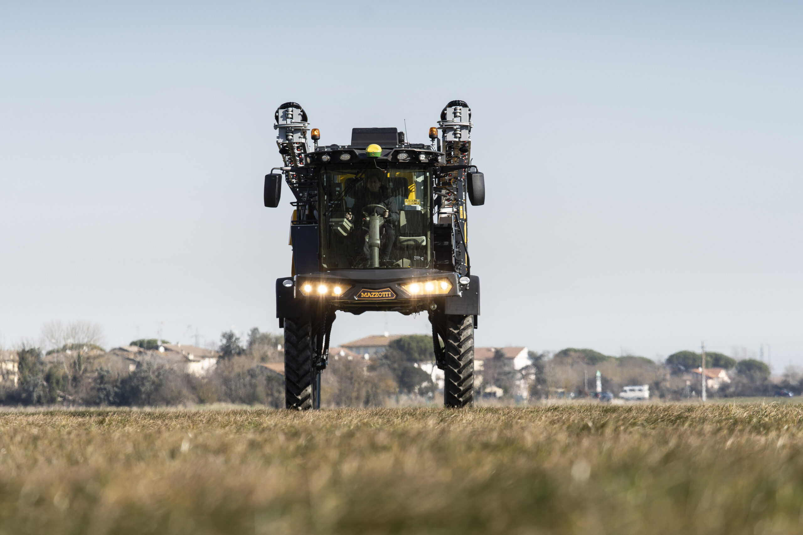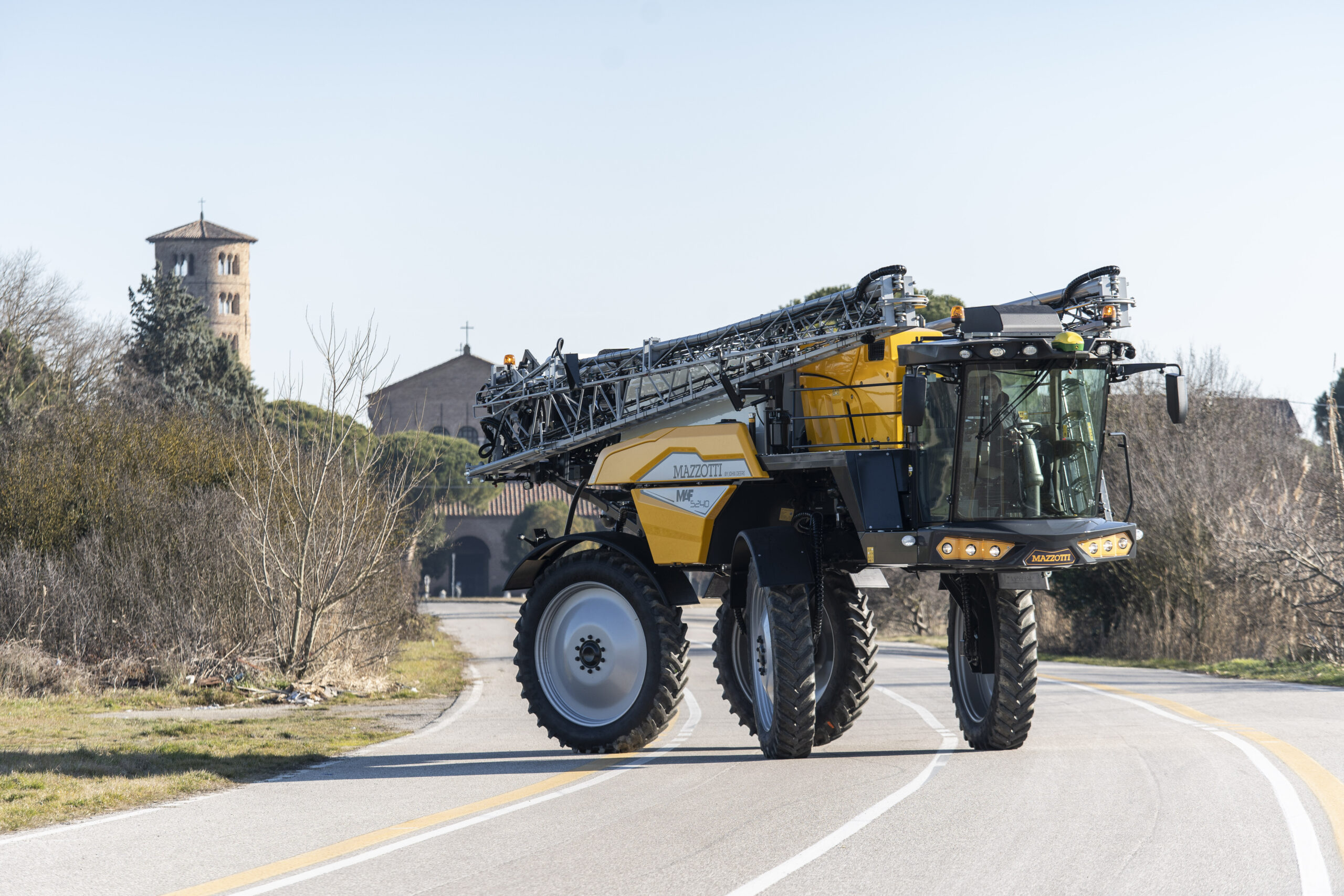 Il sistema a **4 ruote sterzanti** è fondamentale per ridurre i tempi di accesso e non danneggiare le colture. Le ruote posteriori seguono quelle anteriori (due traiettorie sul terreno). La MAF consente 3 combinazioni di sterzata: due ruote anteriori, quattro ruote sterzanti e sterzata a granchio. Sicurezza nei trasferimenti veloci grazie all’esclusivo sistema di bloccaggio dell’assale posteriore Mazzotti. |