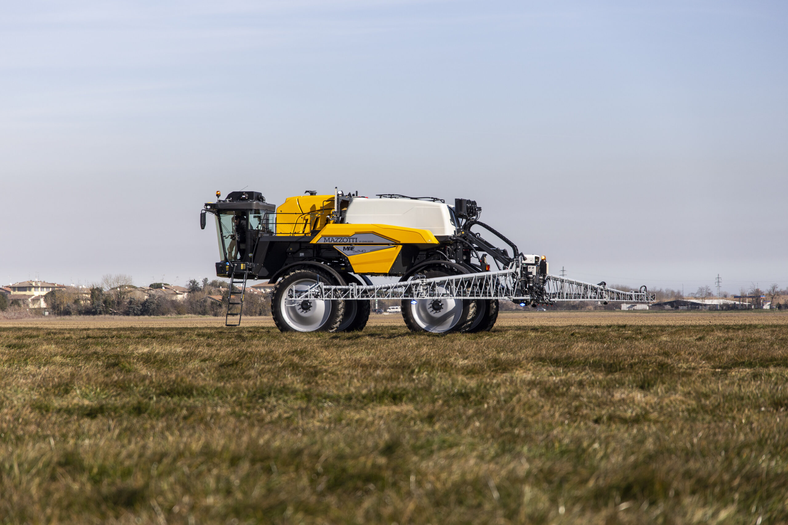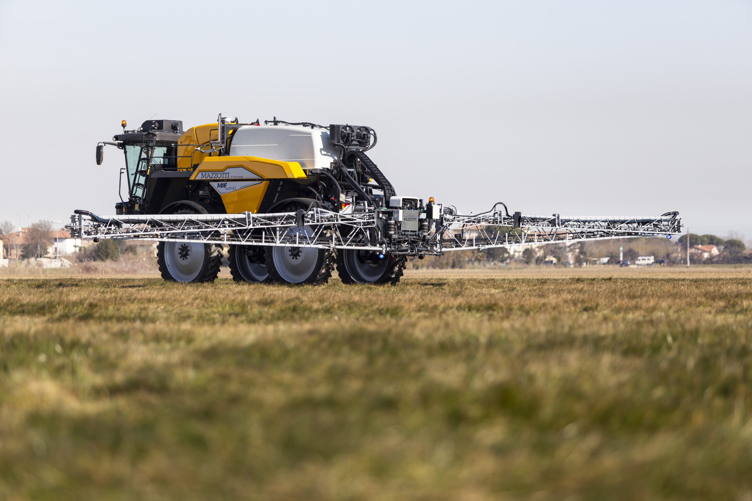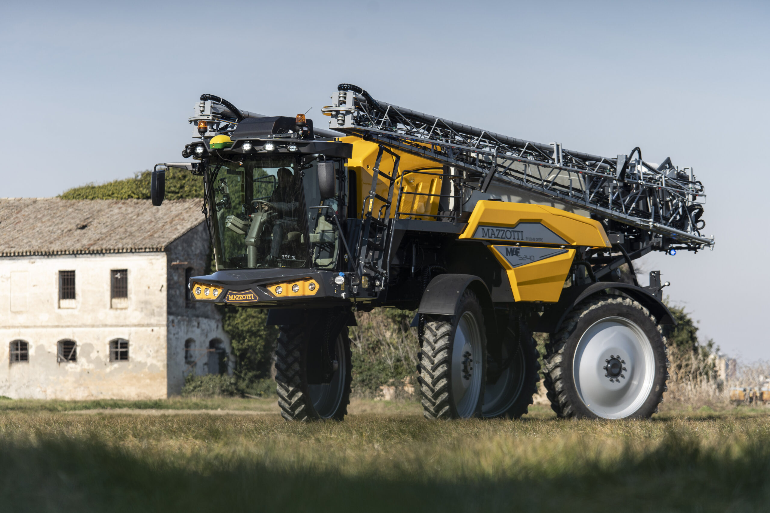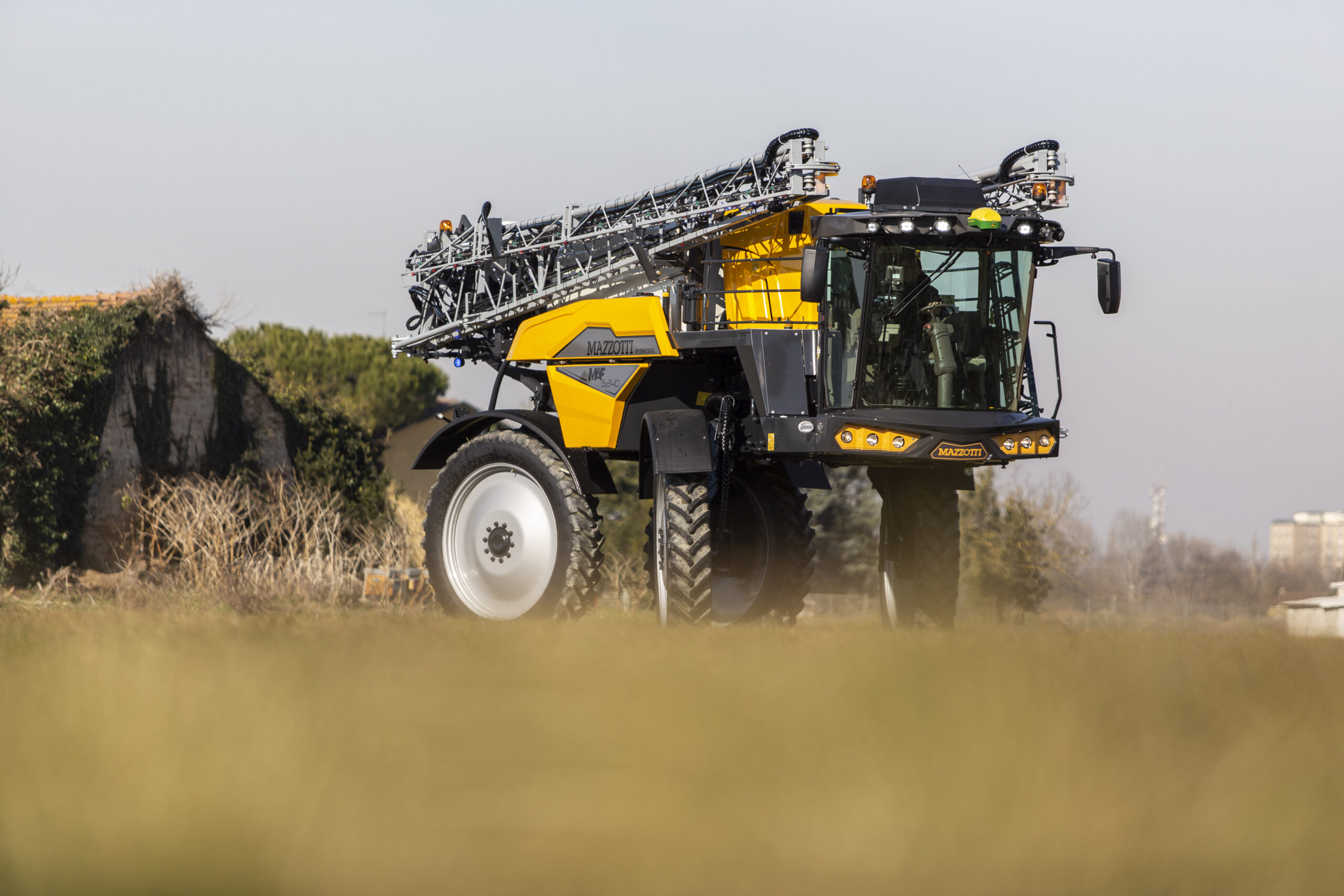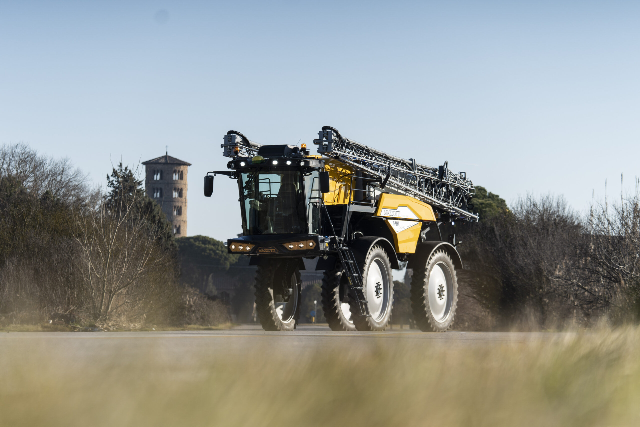 Il sistema a **4 ruote sterzanti** è fondamentale per ridurre i tempi di accesso e non danneggiare le colture. Le ruote posteriori seguono quelle anteriori (due traiettorie sul terreno). La MAF consente 3 combinazioni di sterzata: due ruote anteriori, quattro ruote sterzanti e sterzata a granchio. Sicurezza nei trasferimenti veloci grazie all’esclusivo sistema di bloccaggio dell’assale posteriore Mazzotti. |