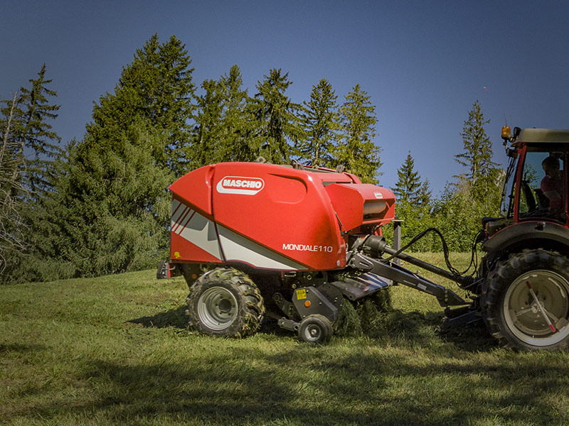 MONDIALE 110 è la rotopressa a camera fissa a rulli studiata e sviluppata per la collina e la montagna, condizioni particolari che richiedono una macchina compatta e a baricentro basso. Il design dei rulli, con profilo di convogliamento attivo, è stato progettato per garantire una presa sicura e costante su tutti i tipi di prodotto, siano essi secchi o bagnati, mantenendo sempre in rotazione la balla in formazione. Inoltre le dimensioni compatte e il peso contenuto consentono l’abbinamento con trattori di bassa potenza, offrendo la massima manovrabilità.