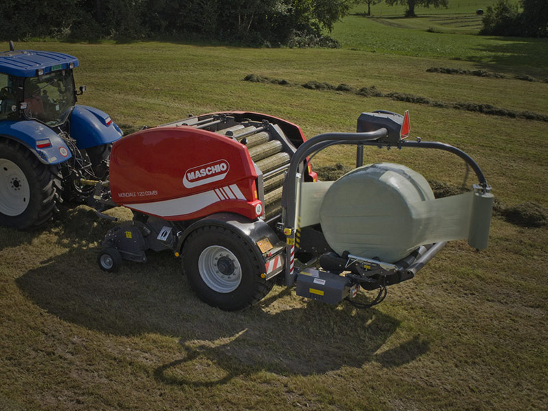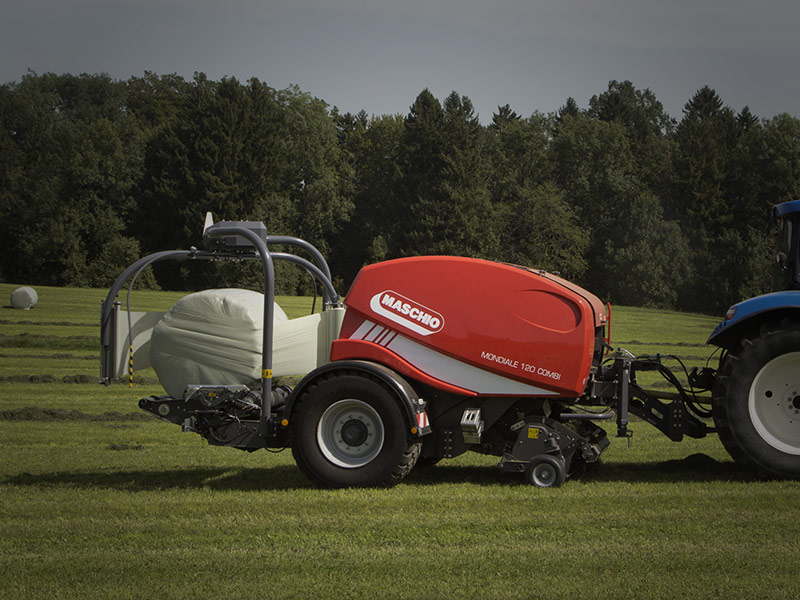 MONDIALE 120 COMBI è la rotopressa a camera fissa a rulli che rappresenta la soluzione perfetta per le operazioni di pressatura e fasciatura con una sola macchina. Durante la raccolta il prodotto viene tagliato, imballato e fasciato in un solo passaggio, riducendo notevolmente la permanenza in campo e migliorando le caratteristiche qualitative del prodotto raccolto. MONDIALE 120 COMBI è una macchina **completamente automatica** in tutte le sue funzioni, disponibile con due sistemi di taglio, due tipi di legatura ed un fasciatore a doppio satellite tra i più veloci del mercato.