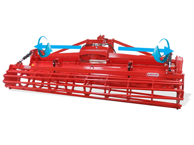 | Le versioni dotate di rullo utilizzano un apposito kit di collegamento con martinetti idraulico agli estremi per regolare l’assetto del rullo. |