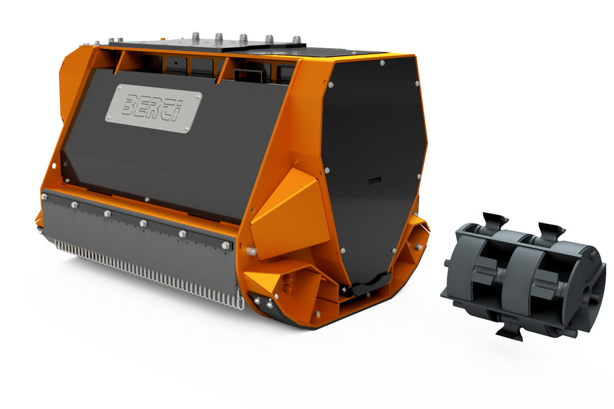 Trincia forestale con rotore a mazze mobili a scomparsa per escavatore con peso da 180 a 300 quintali. Adatta alla trinciatura di erba, arbusti, cespugli e all’abbattimento e trinciatura di rami e alberi fino a Ø 35 cm.