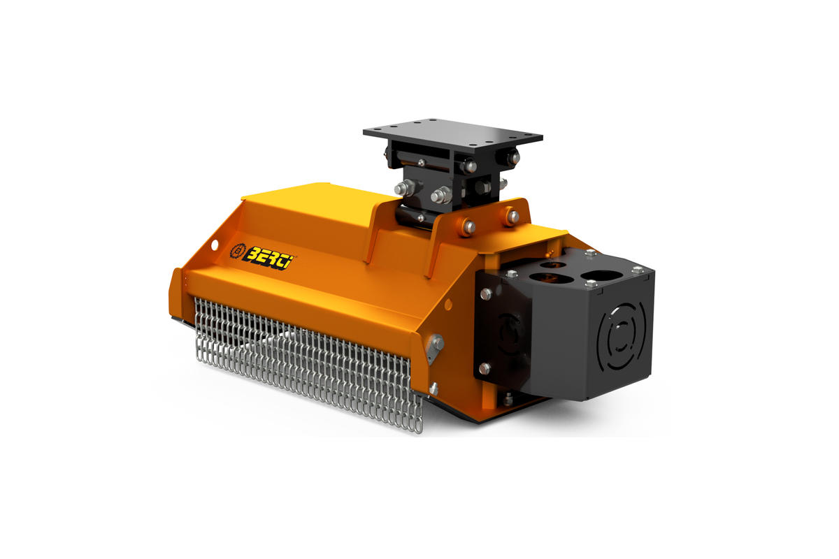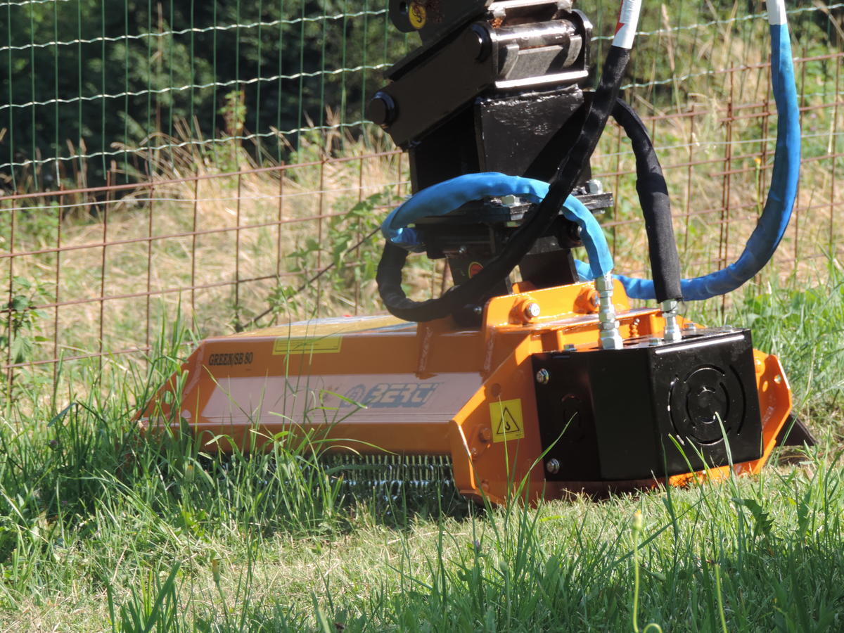Trincia per miniescavatore, con peso operativo compreso fra 15 e 25 quintali, adatta a trinciare erba, piccoli rovi fino a Ø 1-2 cm. |