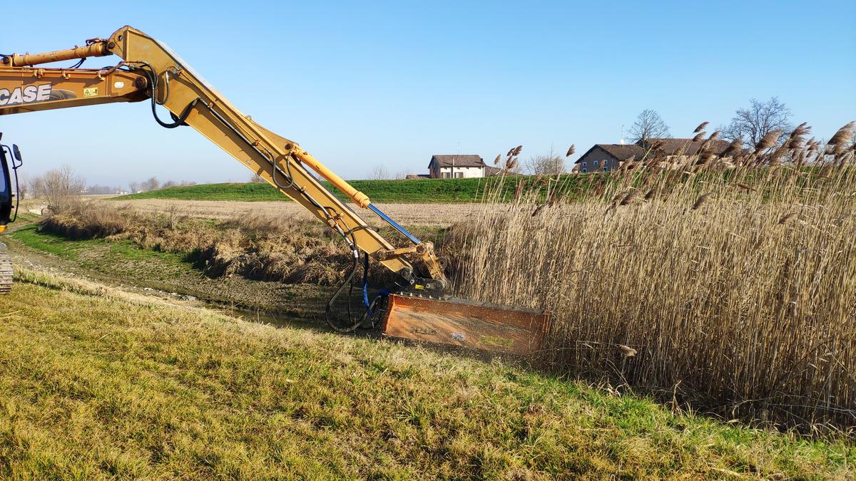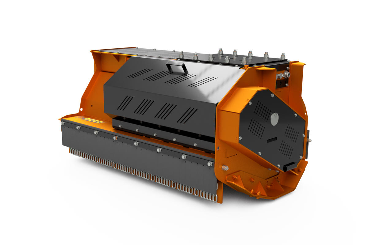 Trincia per escavatore con peso operativo da 120 a 200 quintali, adatta ad eseguire lavori di decespugliazione su erba, canneto, rovi, cespugli ed arbusti fino a Ø 10-12 cm.