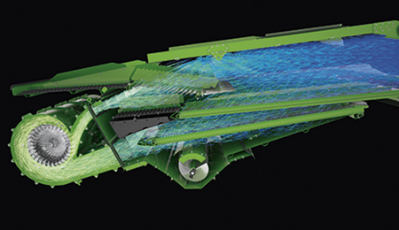 | FLUSSO D’ARIA OMOGENEO: 4 TURBINE DI VENTILAZIONE AD ALTE PRESTAZIONI per un flusso d’aria costante su tutto il sistema crivellante. |