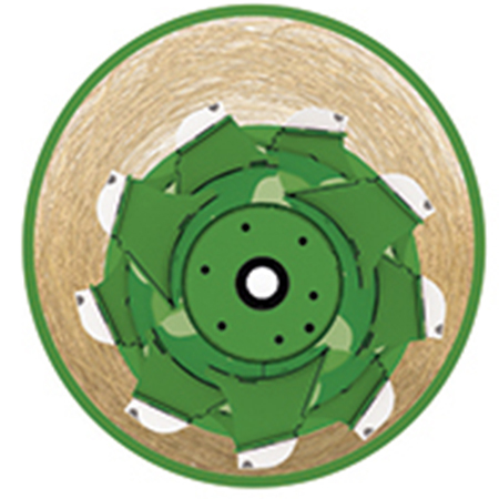 | COLTELLI AERODINAMICI: Nuovo design brevettato riduce l'assorbimento di potenza fino a 20 kW (27 CV RIDUZIONE ASSORBIMENTO DI POTENZA). |