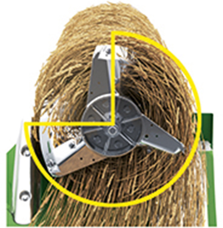| TREBBIATURA ATTIVA DEL RECUPERO: Utilizza un sistema di trebbiatura in miniatura (con proprio tamburo e controbattitore di gomma morbida) che riduce il carico sui rotori principali per aumentare il rendimento. |