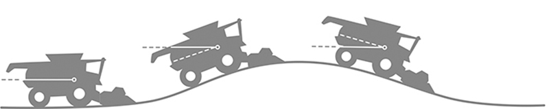| ADERENZA AL TERRENO SENZA EGUALI: Il telaio di fissaggio regolabile idraulicamente e le ali della testata (fino a 10° di flessione) garantiscono un'aderenza perfetta, con movimento verticale fino a 3.317 mm (HD50R). |