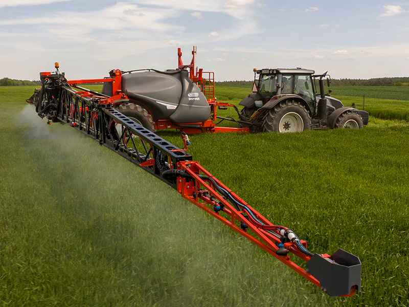 Sviluppato appositamente per il sollevatore a parallelogramma, il gruppo centrale è dotato di **autolivellante pendolare a doppio snodo su cuscinetti**, che elimina gli spostamenti laterali della barra, offrendo un maggiore comfort di lavoro all’operatore. I bracci, dotati di chiusura laterale a soffietto, e la **geometria variabile** con ammortizzatori idropneumatici permettono di trattare con precisione anche terreni collinari e avvallamenti. Per un maggiore comfort e semplicità di utilizzo, l’apertura dei bracci è sequenziale e permette la gestione contemporanea di entrambi i lati. Oltre ai componenti strutturali della barra, è stato rivisto anche il circuito ad acqua, che ora dispone di serie del sistema a ricircolo semicontinuo e fino a **13 sezioni acqua dedicate**. L’ottima bilanciatura dei pesi e l’utilizzo di materiali altamente professionali (Domex, alluminio) conferiscono alla barra massima reattività ed equilibrio. |