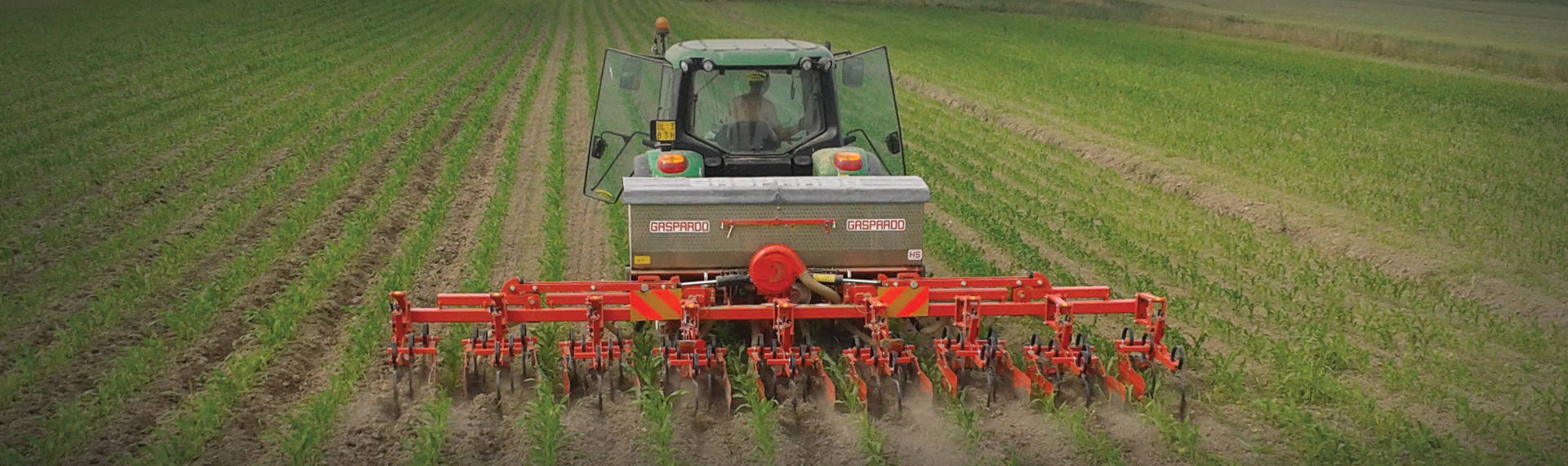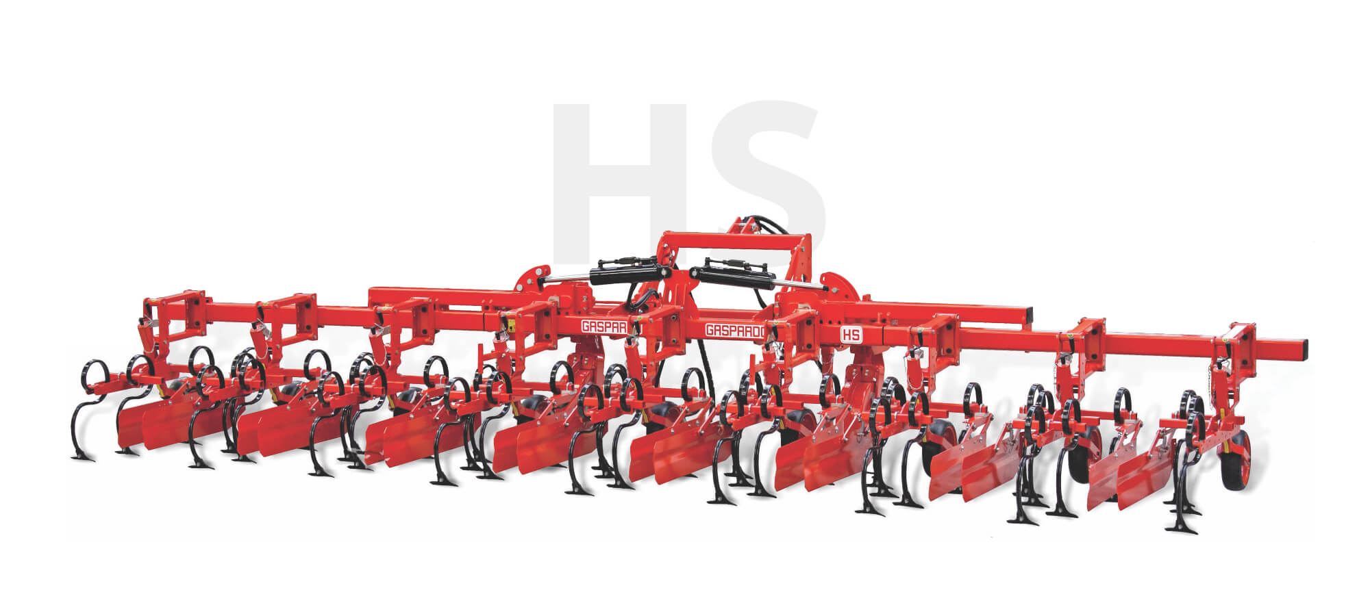 Semina di Precisione e Telaio Pieghevole Idraulico Specialisti per tradizione nella semina di precisione, GASPARDO è riconosciuta anche per l’affidabilità e la capacità operativa delle proprie sarchiatrici, progettate accuratamente per la lavorazione interfilare delle principali colture estensive, cerealicole e orticole. Il modello HS si caratterizza per il telaio con ali laterali pieghevoli idraulicamente di tipo portato ed è disponibile nelle versioni “Bietola” e “Mais” fino ad un massimo di 18 file. Unità Sarchiante HEAVY DUTY L’elemento sarchiante GASPARDO è caratterizzato da soluzioni strutturali di alto livello come il robusto sistema di connessione a doppio parallelogramma dall’elevata luce libera a terra con molla di precarico, lo sgancio rapido e gli elementi operanti saldamenti fissati. Questi presentano una disposizione sfalsata delle molle “Superflow” che consente sia un agevole flusso di terreno senza rischi di intasamento che di montare differenti tipologie di organi lavoranti e protezioni laterali in funzione delle differenti esigenze operative. Robusta e Pieghevole per Trasporto Sicuro L’elemento sarchiante GASPARDO si accoppia al robusto telaio, caratterizzato da una struttura monotrave con ali laterali pieghevoli a chiusura idraulica che permette un ingombro di trasporto di solo 2,5 m per le versioni fino a 12 file. Grazie al dispositivo di blocco automatico delle ali laterali, il trasporto è sicuro e stabile. Nelle versioni dotate di spandiconcime, la struttura è del tipo a doppio telaio, per offrire la massima robustezza; di serie sono montate le ruote portanti da 400 mm, soluzione ottimale soprattutto per le elevate larghezze di lavoro. Per le versioni base compatte, non dotate di spandiconcime, è disponibile a richiesta l’accoppiamento frontale al trattore. Sarchiatrice Polivalente L’efficienza operativa in campo può essere migliorata grazie allo spandiconcime, permettendo di concentrare in unica passata l’eliminazione delle malerbe, la distribuzione e l’interramento del concime. Per le versioni da 12 a 18 file, lo spandiconcime è del tipo a tramoggia frontale portata PA1, mentre per le versioni fino a 8 file, è disponibile la classica tramoggia montata sul telaio con capienza da 950 l sia in lamiera verniciata che in acciaio inox. Sarchiatrice Intelligente (Guida Automatica) Per aumentare la precisione di lavoro in campo, il modello HS può essere abbinato al sistema di GUIDA INTELLIGENTE (su versioni fino a 12 file 45-50 senza spandiconcime), un gruppo indipendente applicato tra trattore e sarchiatrice che consente di guidare automaticamente attraverso le file permettendo di far avvicinare le zappe alla pianta fino a 3 cm anche ad elevate velocità di avanzamento. Per garantire un’efficace trasmissione del moto, la doppia ruota motrice è provvista di denti per aumentare la trazione al terreno. Perché Scegliere HS HS è il modello ideale per le aziende medio grandi ed i contoterzisti che richiedono sarchiatrici ad alte prestazioni e capaci di elevata precisione. DATI TECNICI (Modello HS)