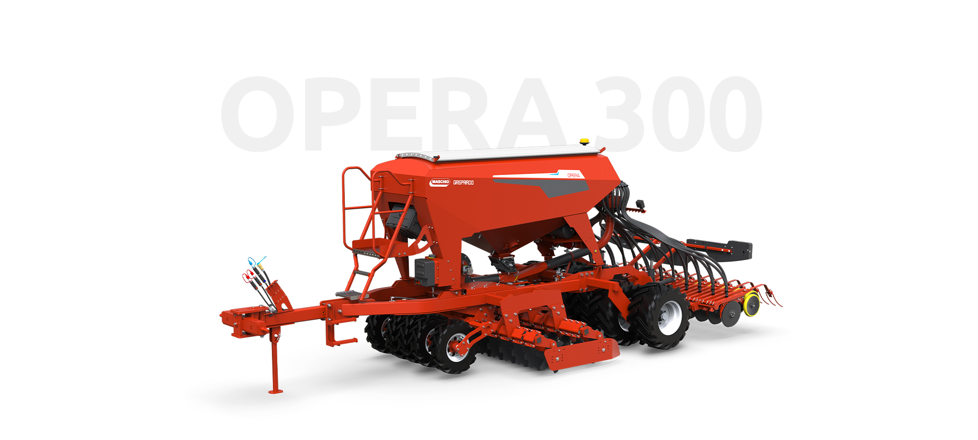 Seminatrice Combinata Compatta OPERA 300 è l'innovativa seminatrice combinata compatta, progettata per la semina di cereali su terreni collinari e appezzamenti contenuti. Dotata di una tramoggia da 3.000 l, è ideale per aziende agricole e contoterzisti che cercano agilità e praticità senza rinunciare a risultati eccellenti. Disponibile in una versione da 3 metri con 24 file (interfila 12,5 cm), è pensata per trattori con potenze tra i 120 e 180 CV. Combinando due lavorazioni in un unico passaggio (preparazione del letto di semina e semina), OPERA 300 assicura un’efficienza superiore in campo, riducendo i tempi operativi, i consumi e il calpestio del terreno, per un’agricoltura più sostenibile e produttiva. La Forza della Semplicità OPERA 300 è progettata per offrire una gestione intuitiva e comandi semplici, garantendo affidabilità e semplicità operativa. Grazie all’accoppiamento trainato e all’attacco a due punti, i trasferimenti stradali e le voltate a fine campo diventano operazioni fluide e veloci. Efficienza su Terreni Collinari La struttura compatta e il design robusto rendono OPERA 300 ideale per lavorare su terreni irregolari, lavorati o minimamente lavorati. Le grandi ruote di trasporto da 800 mm di diametro garantiscono stabilità e un’ottima capacità di consolidamento del letto di semina, anche su pendenze elevate. Semina Uniforme e Costante La barra di semina, con 24 file e interfila da 12,5 cm, è progettata per garantire una profondità costante e uniforme della semente. Il sistema idraulico di regolazione della pressione, che può arrivare fino a 110 kg per elemento, e i ruotini premiseme autopulenti, assicurano un’emergenza regolare anche in condizioni di terreno umido o compatto. Combinazione di Lavorazioni in un Unico Passaggio OPERA 300 unisce la lavorazione del terreno e la semina in un solo passaggio, riducendo al minimo i tempi operativi (grazie anche alla velocità di lavoro fino a 12 km/h) e l’impatto sul terreno. I due ranghi di dischi da 460 mm garantiscono un’eccellente lavorazione anche in presenza di residui colturali, mentre l’erpice copriseme completa il lavoro con una perfetta copertura della semente. Erpice a Dischi L'erpice di OPERA 300 è composto da due ranghi di dischi da 460 mm, progettati per garantire una lavorazione efficace del terreno anche in presenza di residui colturali. Gli ampi spazi tra i dischi favoriscono un flusso ottimale del terreno, mentre l’inclinazione e la concavità riducono l’accumulo di terra. Ruote Gommate OPERA 300 è dotata di due gruppi di ruote: un primo gruppo opzionale di ruote gommate che rompe gli aggregati più grandi, e il secondo gruppo di ruote di trasporto di grande diametro (800 mm) che svolge la funzione di riconsolidamento del terreno, preparando un letto di semina uniforme. Semplici Regolazioni La barra di semina è composta da 24 elementi con pressione regolabile idraulicamente fino a 110 kg. Ogni elemento è dotato di un ruotino premiseme per mantenere costante la profondità di semina. Le regolazioni sono intuitive e precise per adattarsi alle diverse condizioni del terreno. Tramoggia Capiente La tramoggia da 3.000 litri di OPERA 300, frutto della collaborazione con la Scuola Italiana di Design, è progettata per garantire un’autonomia operativa elevata anche in contesti collinari o su appezzamenti frammentati, con un caricamento rapido e una gestione agevole del prodotto. Sistema di Copertura L’erpice copriseme di OPERA 300 garantisce una distribuzione uniforme del terreno sopra i semi, favorendo un’emergenza regolare e una germinazione omogenea, ideale anche su terreni non perfettamente preparati. Agricoltura di Precisione La trasmissione elettrica ISOTRONIC e il sistema di comunicazione ISOBUS permettono il controllo digitale della seminatrice e di usufruire di tutte le funzioni di Precision Farming, come la dose variabile. Distribuzione Pneumatica L'affidabile distributore volumetrico e il sistema di trasporto pneumatico MASCHIO GASPARDO assicurano una semina precisa e omogenea, anche in collina, con tutte le tipologie di semi (cereali autunno vernini, colza, erba medica e cover crops). I dosatori a rulli scanalati sono intercambiabili. Perché Scegliere OPERA 300 Semplice, compatta e produttiva, OPERA 300 è la seminatrice combinata perfetta per terreni collinari e appezzamenti ridotti. La sua agilità e la capacità di combinare più lavorazioni in un unico passaggio consentono di risparmiare tempo e risorse, garantendo risultati di qualità anche in ottica di Precision Farming. |
