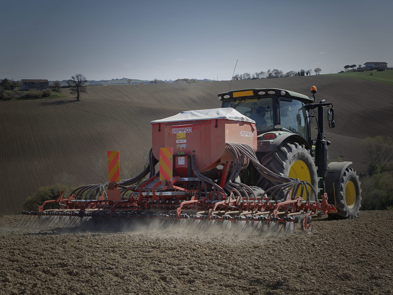 PINTA XL ISOTRONIC e PINTA SC ISOTRONIC introducono il segmento delle seminatrici in linea pneumatiche per cereali di grandi dimensioni. Frutto dell’esperienza secolare di GASPARDO nel settore, questi modelli si caratterizzano per **affidabilità, robustezza e grande autonomia**. Basate su un telaio di tipo portato o trainato (su richiesta) con ali laterali a chiusura idraulica, sono disponibile nelle versioni da **5 e 6 m fino ad un massimo di 48 file** ideale per la semina di colture come cereali e colza.