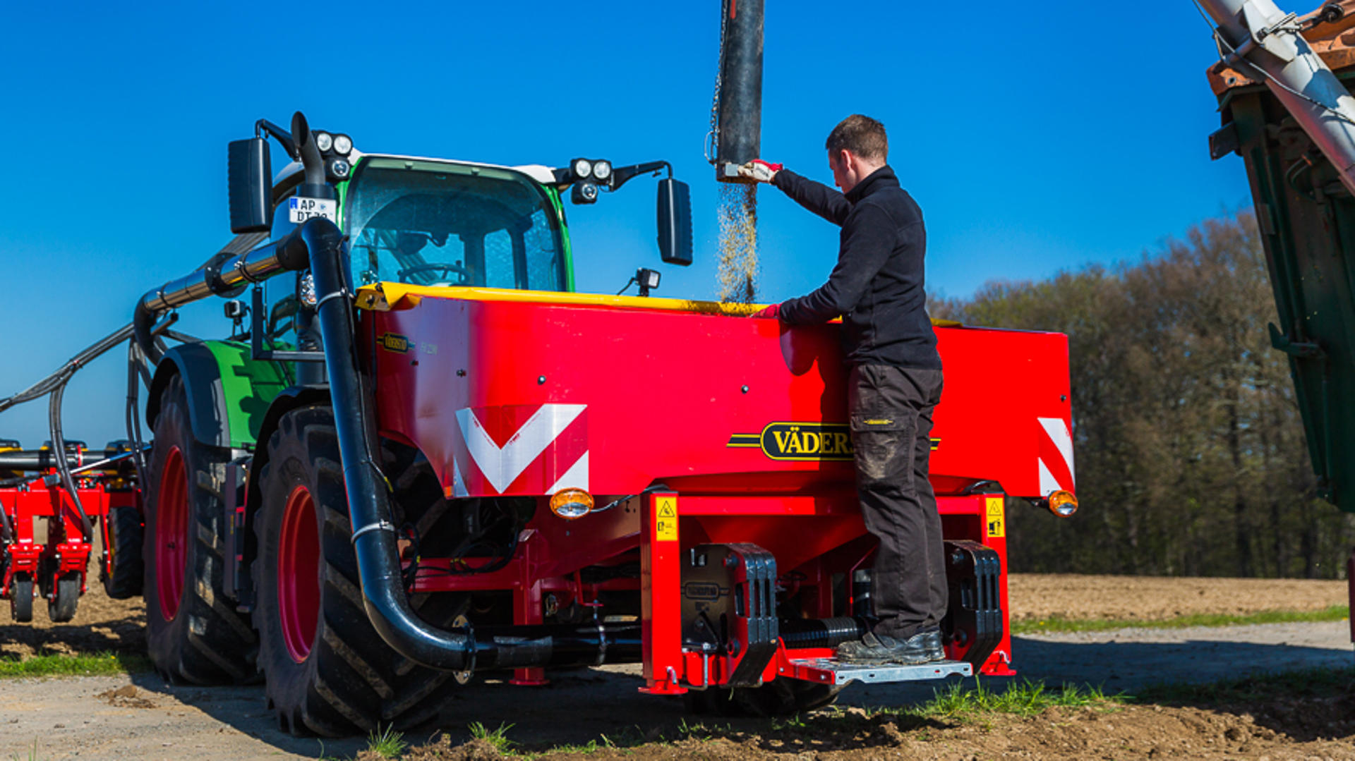 Distribuzione del concime ad alta capacità La tramoggia frontale per il concime FH 2200 consente grande precisione nella semina in combinata. La tramoggia da 2.200 litri è dotata di sistema di alimentazione elettrica Fenix III, adatta a elevate capacità e velocità di lavoro in campo. L’FH 2200 garantisce una resa operativa perfettamente compatibile con la seminatrice Tempo. Nuova generazione di alimentazione di precisione L’FH 2200 è dotato di sistema di alimentazione Fenix III, pratico e facile da usare. Gestisce grandi dosaggi senza limiti di capacità. La potente turbina idraulica assicura una distribuzione regolare del concime anche ad alte velocità. Il morbido rotore sigilla il sistema riducendo le necessità di aria e risparmiando carburante. Tramoggia capiente e facile da riempire Il design frontale inclinato offre buona visibilità all’operatore. L’ampia apertura e la pedana incorporata rendono facile l’accesso per il carico. Optional zavorre permettono di aumentare il carico sulle ruote anteriori del trattore, migliorando la trazione. Moderno sistema di controllo collegato Quando l’FH 2200 è utilizzato con la seminatrice Tempo, si connette alla Gateway della seminatrice. Questo consente il controllo con il sistema iPad Väderstad E-Control o tramite terminale ISOBUS del trattore, integrando FH 2200 e seminatrice in un unico sistema. Dati tecnici