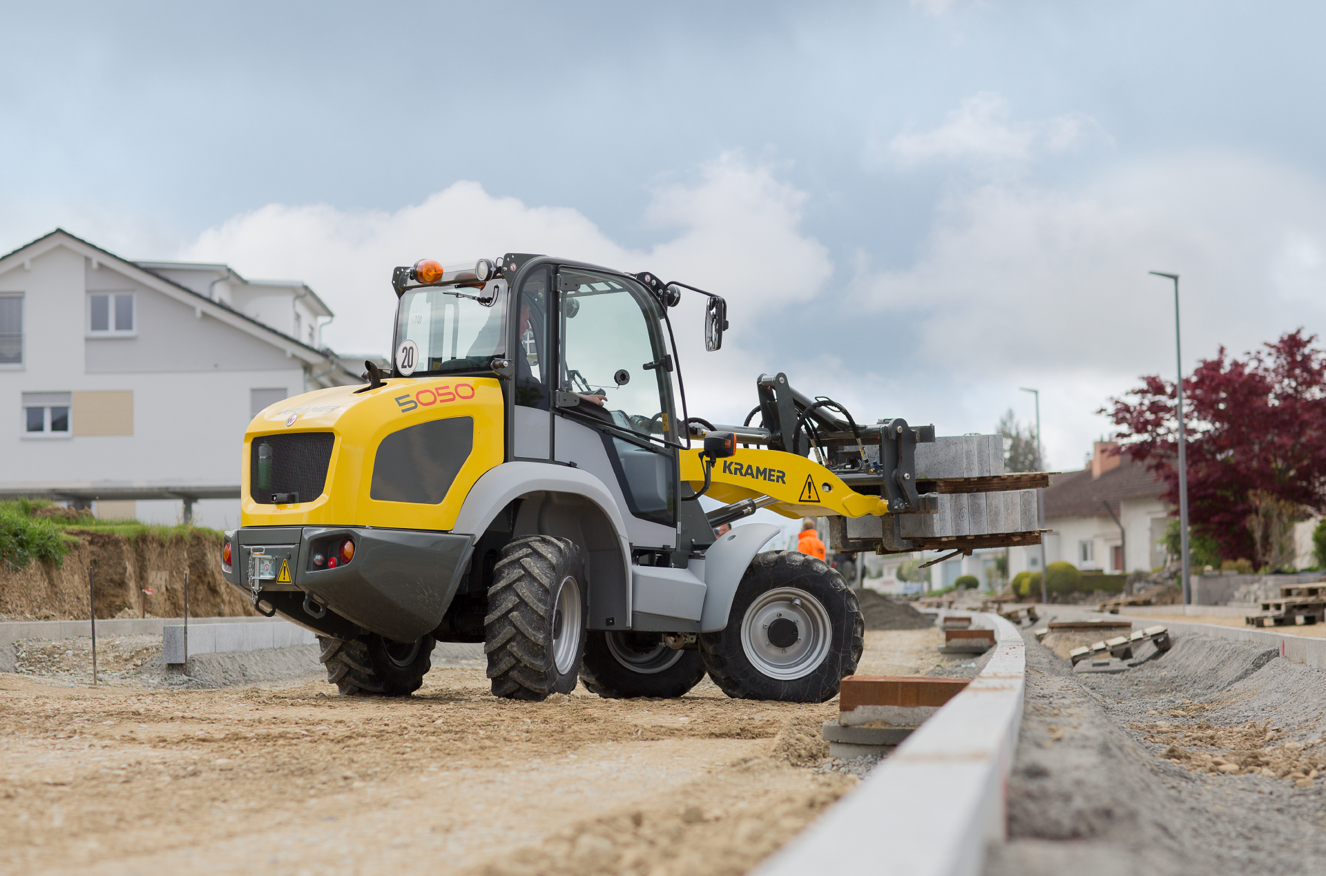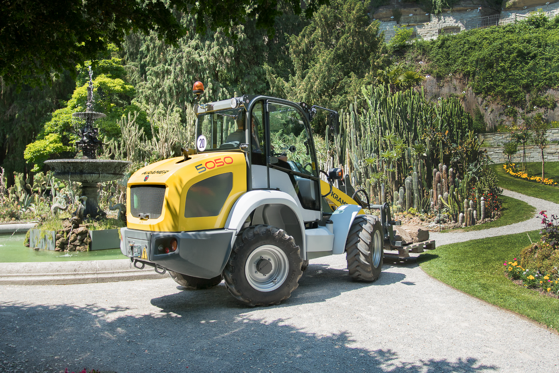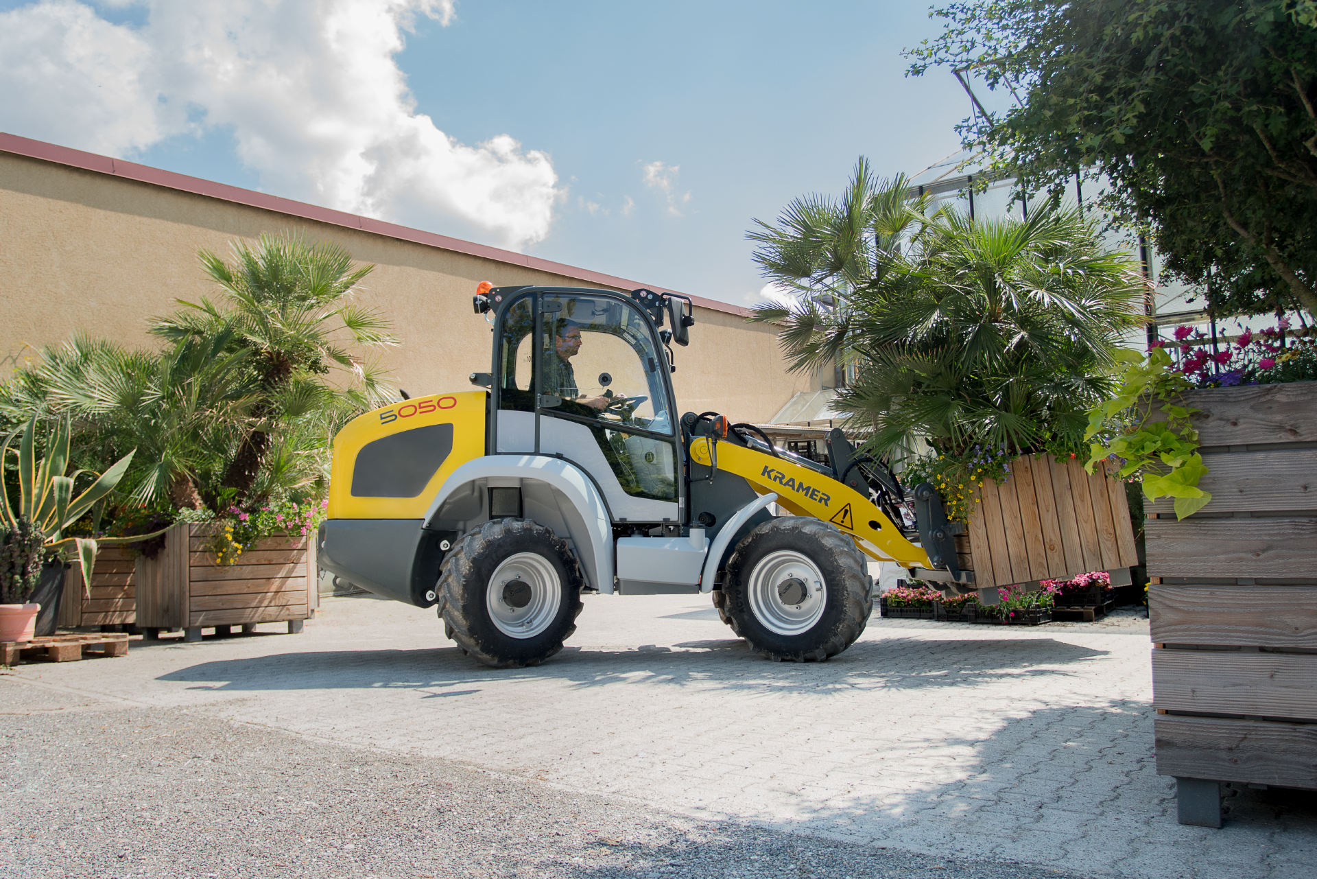 Kramer presenta una speciale innovazione con la pala gommata 5050 che si contraddistingue per il ridotto peso operativo di 2.620 kg e un carico di ribaltamento fino a 1.700 kg. Grazie alle sue caratteristiche di robustezza e compattezza e alla semplice possibilità di trasporto, la pala gommata trova impiego soprattutto nel settore dell’architettura di giardini e del paesaggio. La movimentazione di pallet con carichi pesanti o il carico di camion a 3 assali fa parte del portafoglio di usi della 5050.