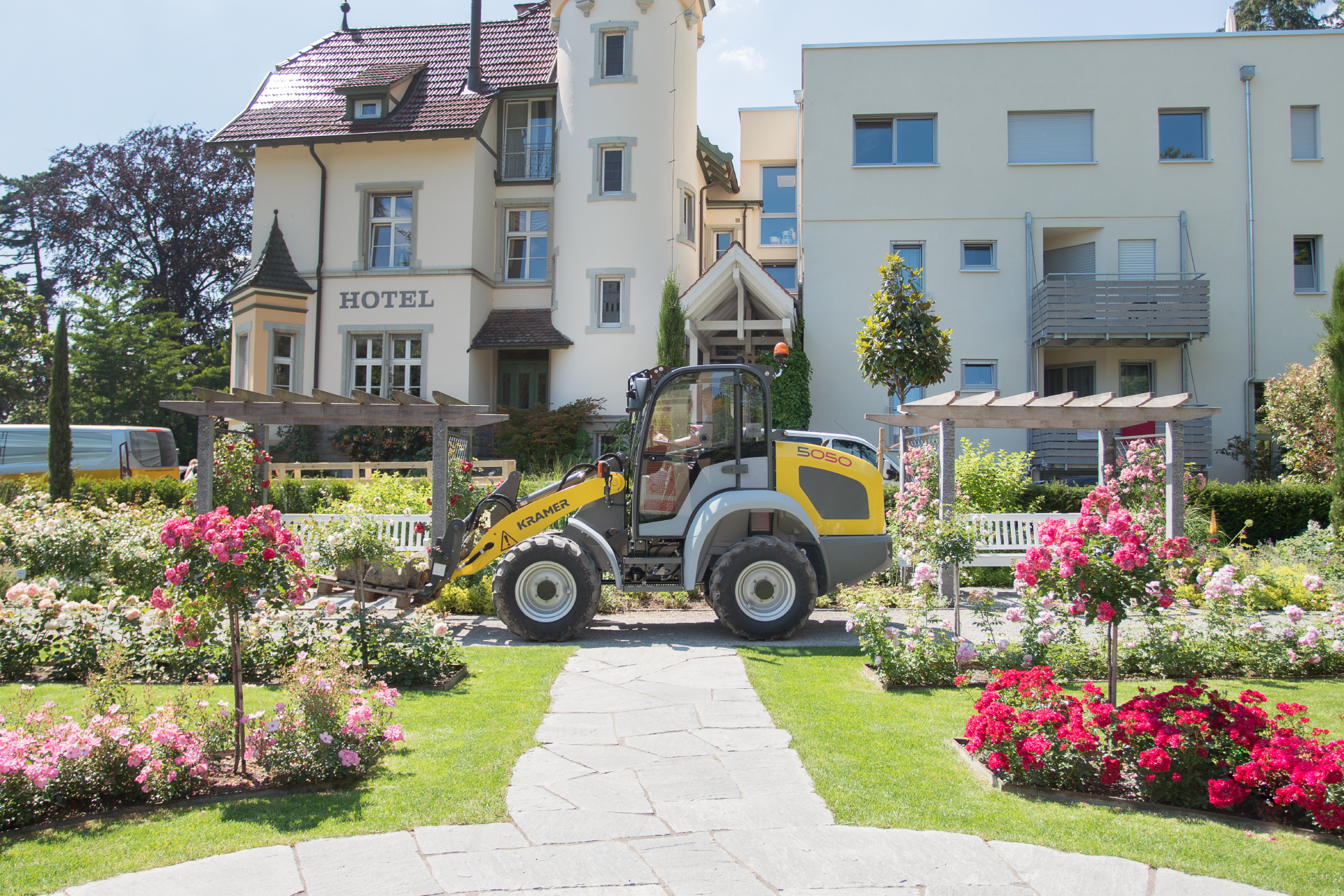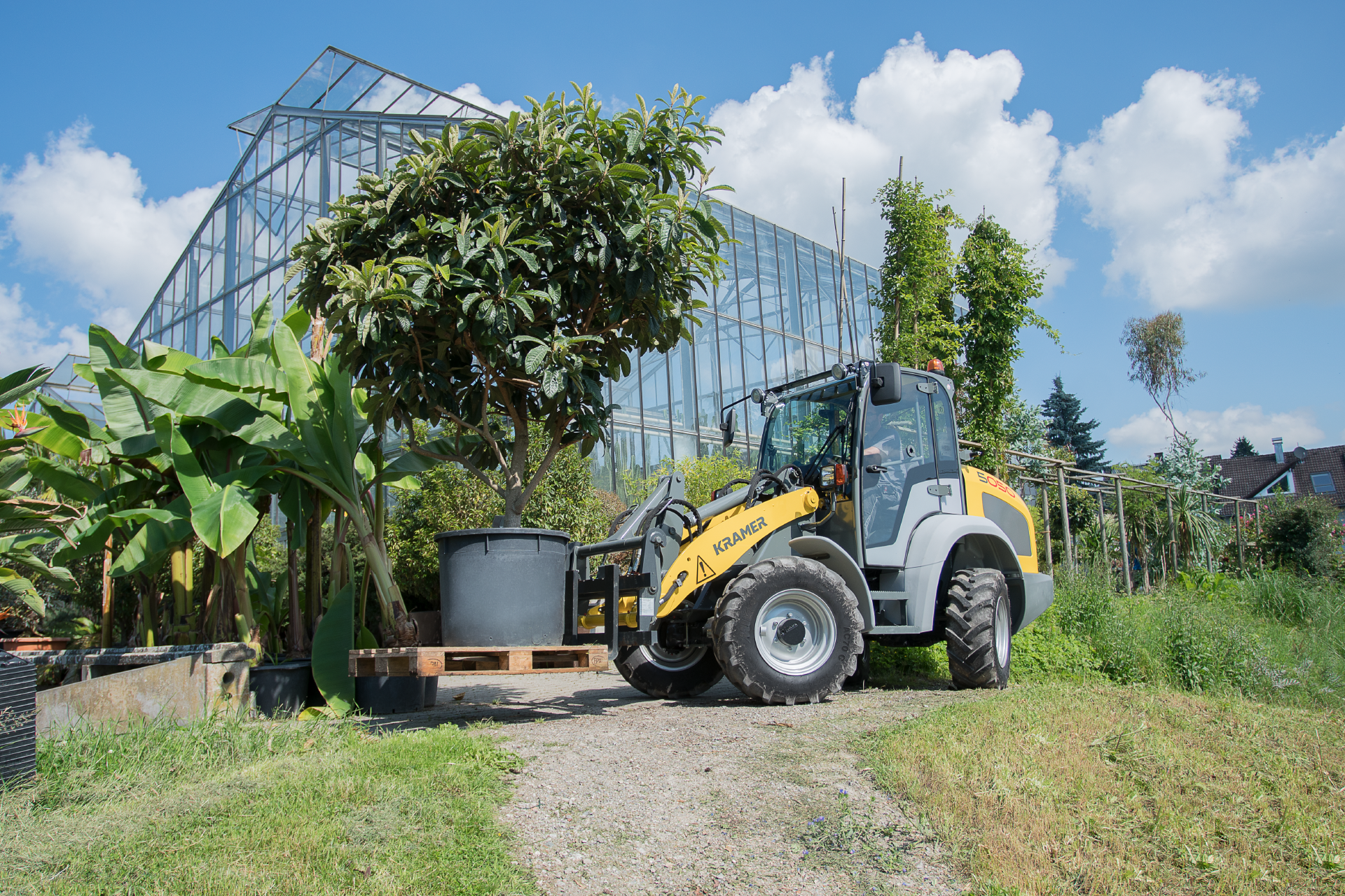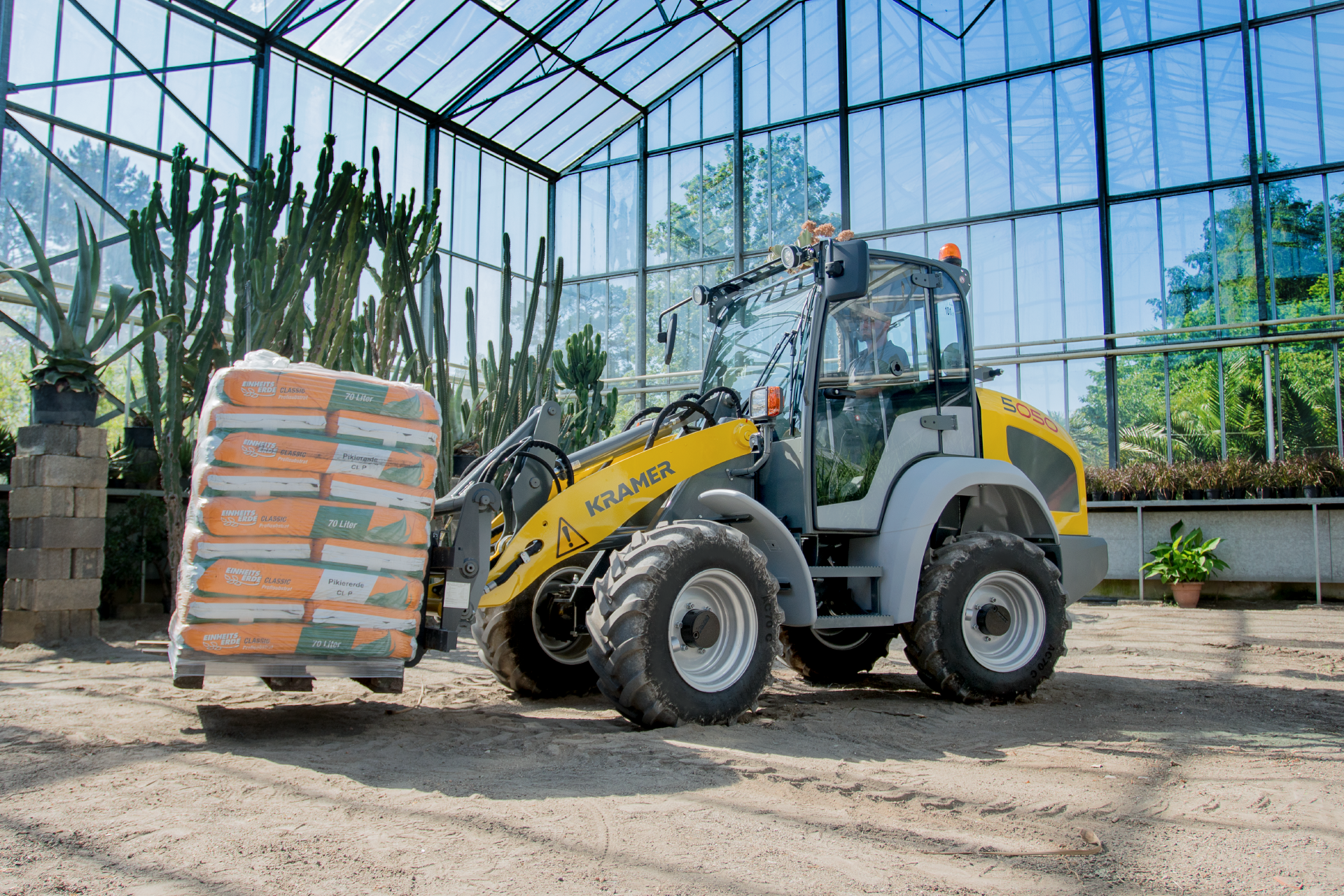 Kramer presenta una speciale innovazione con la pala gommata 5050 che si contraddistingue per il ridotto peso operativo di 2.620 kg e un carico di ribaltamento fino a 1.700 kg. Grazie alle sue caratteristiche di robustezza e compattezza e alla semplice possibilità di trasporto, la pala gommata trova impiego soprattutto nel settore dell’architettura di giardini e del paesaggio. La movimentazione di pallet con carichi pesanti o il carico di camion a 3 assali fa parte del portafoglio di usi della 5050.