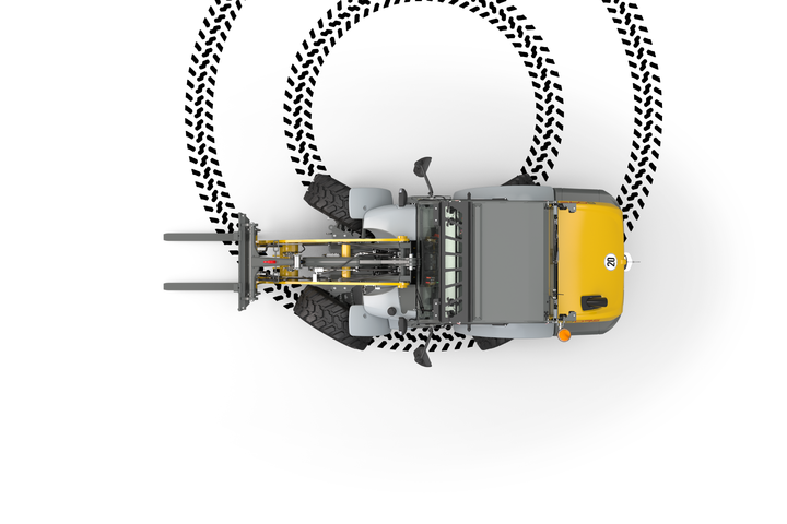 Massima maneggevolezza grazie ad angoli di sterzata fino a 40° sull’assale anteriore e sull’assale posteriore