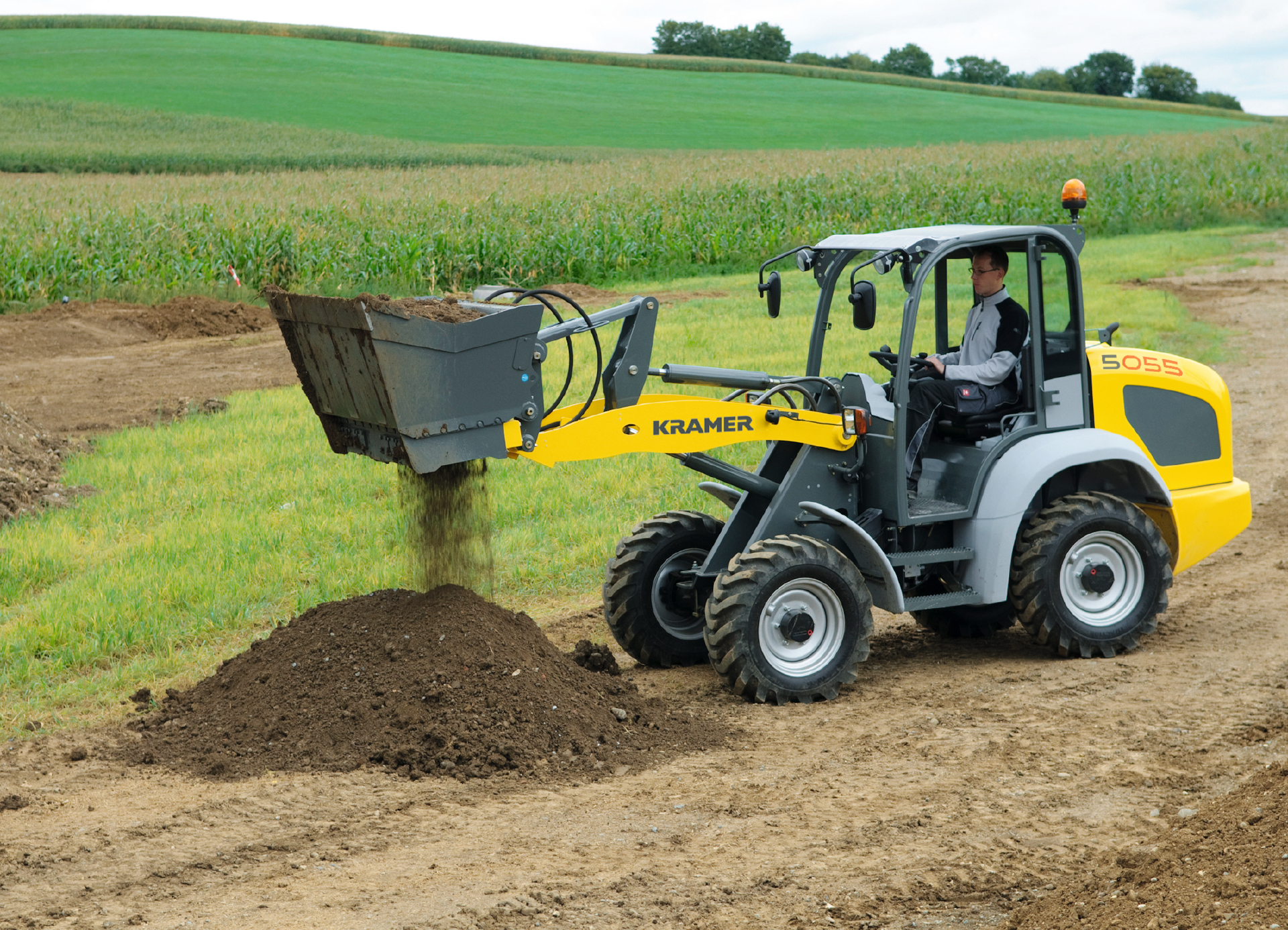 Il modello compatto della serie 5 è una pala gommata a quattro ruote motrici che era nota con il nome “550”. La larghezza di passaggio di questa macchina è inferiore a 1,58 m e consente così di lavorare senza problemi anche in ambienti con spazi limitati. Il concetto del telaio monoblocco consente un’eccellente visuale sulla parte anteriore e su quella posteriore e semplifica ad es. la sostituzione degli accessori. Lo stabilizzatore di carico disponibile come optional assicura un comportamento di marcia regolare e sicuro anche durante i lavori di trasbordo in quanto ammortizza le oscillazioni dell’unità di carico. |