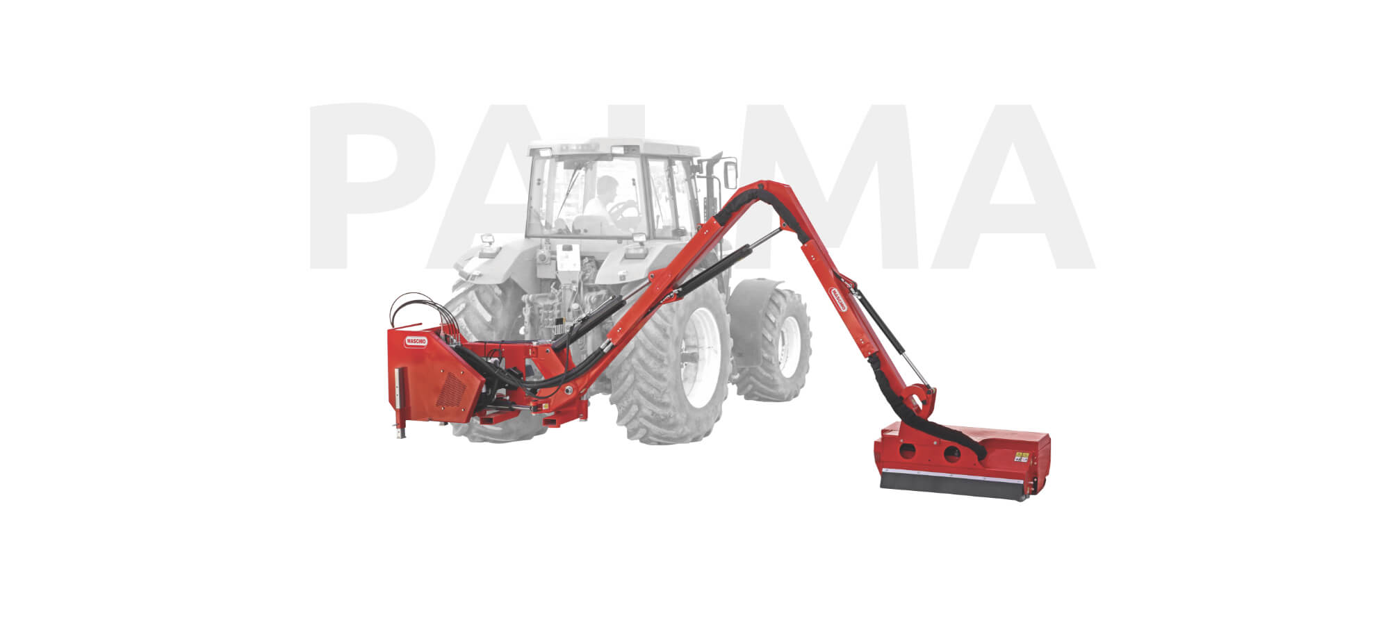 Nuovo| PALMA è un braccio decespugliatore professionale adatto allo sfalcio di erba, arbusti e cespugli, sia in campo che per manutenzione stradale. Disponibile in 3 versioni 500, 600 e 720T. Quest'ultima è dotata di sfilo telescopico per avere uno sbraccio maggiore, accoppiabile a trattori di potenza compresa tra 60 e 80 CV con peso minimo di 2.800 kg e carreggiata minima da 2.000 mm. |