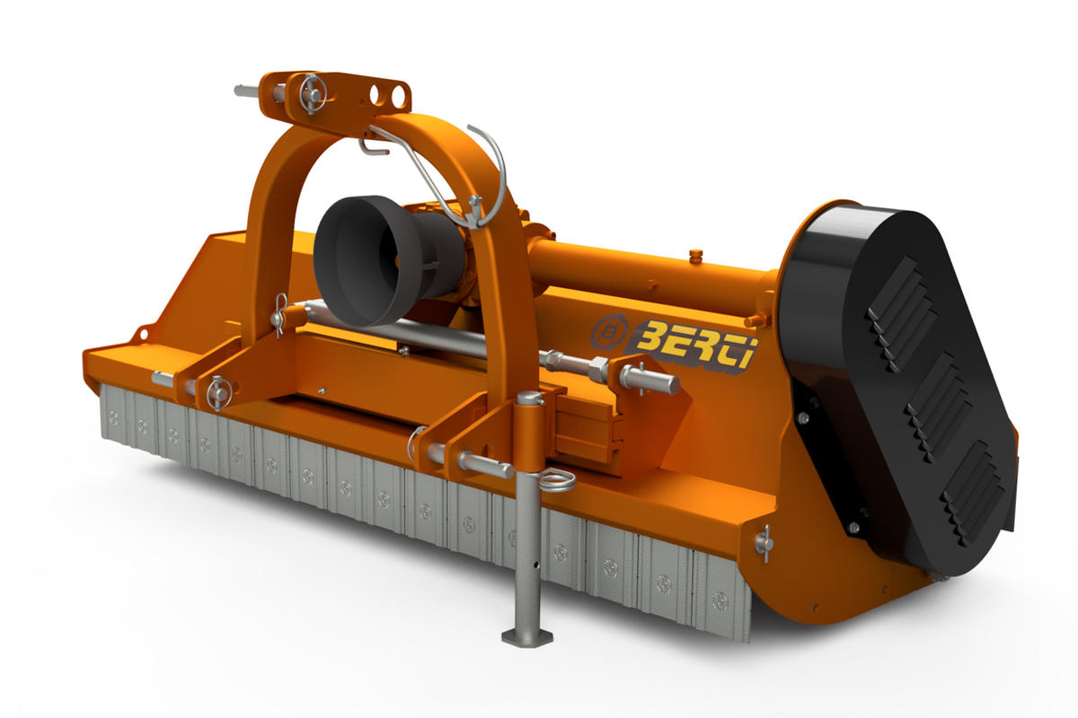La trinciatrice è progettata per essere applicata su trattori con una potenza compresa tra 30 e 60 CV. L'equipaggiamento standard è studiato per favorirne la praticità e la durata nel tempo. L'attacco ai tre punti è spostabile e di categoria I, garantendo una facile installazione e un'ottima stabilità durante l'utilizzo. Il meccanismo di spostamento meccanico offre un controllo preciso, consentendo di adattare l'attrezzatura alle specifiche esigenze del terreno. Il design della fiancata arrotondata consente una buona manovrabilità dell'attrezzatura senza compromettere l'efficienza di taglio all'interno di vigneto e frutteto. La ruota libera nella scatola ingranaggi contribuisce a preservare la durata della trinciatrice, riducendo l'usura e ottimizzando le prestazioni, mentre il rullo, dotato di pulirullo, è regolabile in altezza e garantisce versatilità. Il rotore è dotato di mazze forgiate e bonificate BERTI di tipo P o dal kit coltelli YP, a discrezione dell'operatore, che permette di raggiungere i 4-5 cm su erba e sarmenti. AF è disponibile nelle larghezze di lavoro da 135 a 180 cm di taglio effettivo. Equipaggiamento di serie