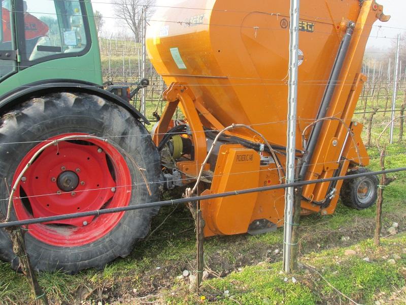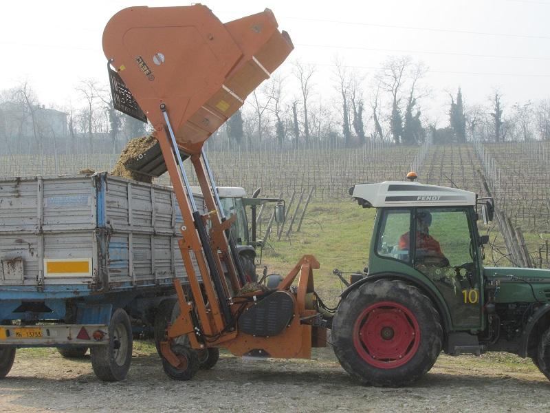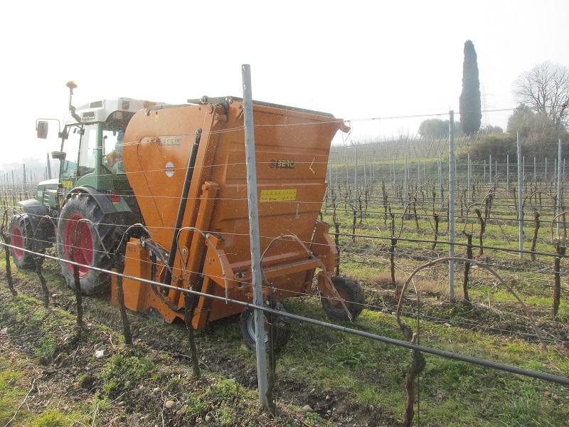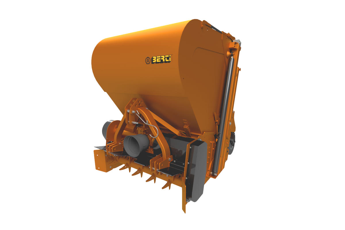 Trincia Berti con rotore pick-up e contenitore per la trinciatura e raccolta di residui di potatura su vigneto, frutteto, uliveto e materiale legnoso fino a Ø 8 cm. Ideale per lavorare anche su terreni coltivati e/o sassosi, da applicare a trattori con potenza compresa tra 60 e 140 HP. Il materiale trinciato viene caricato nel proprio contenitore senza rilasciarlo sul terreno. |