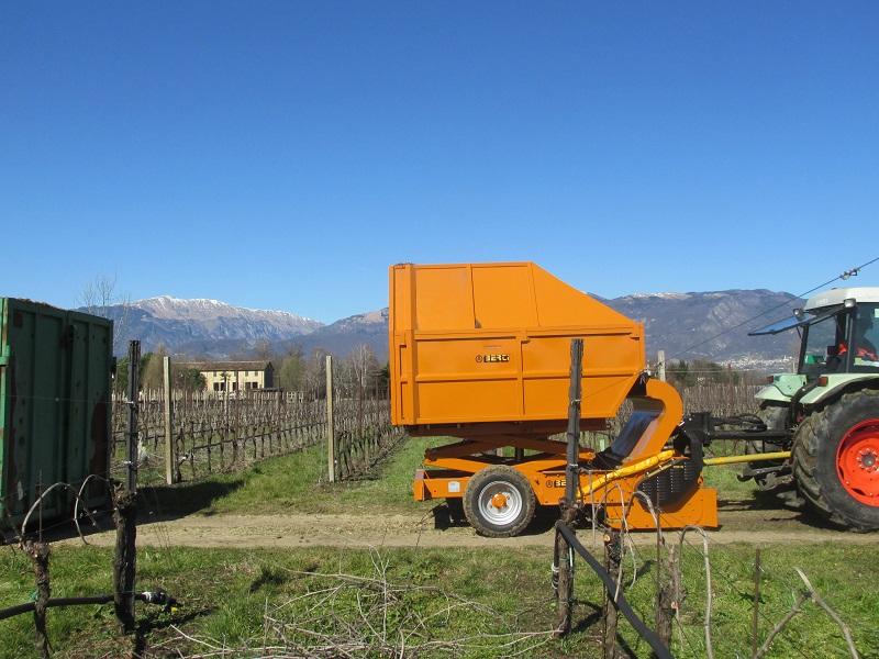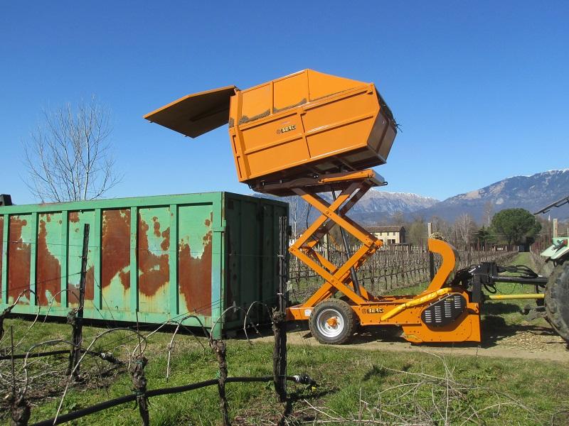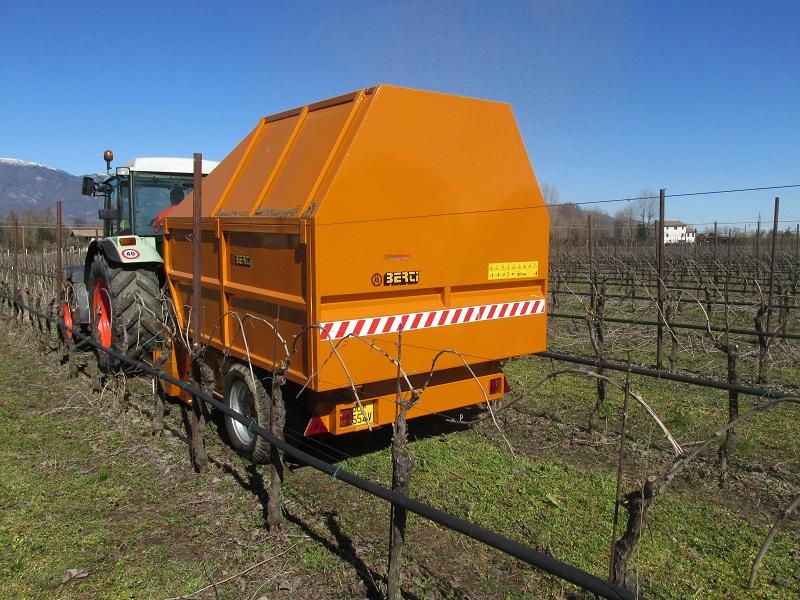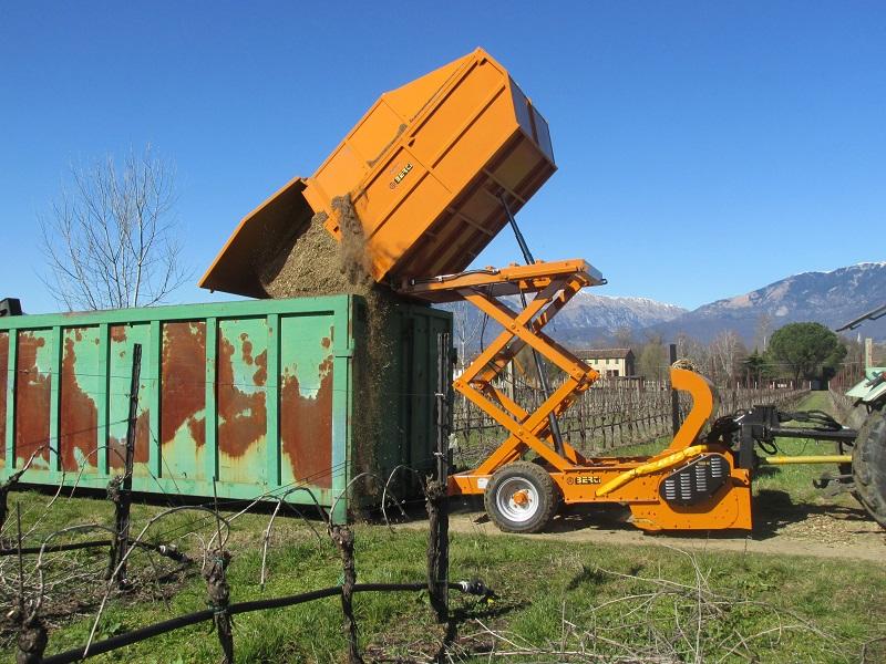 Trincia Berti, di tipo trainato, con rotore pick up ed esclusivo contenitore-rimorchio per la trinciatura e raccolta di residui di potatura su frutteto, uliveto e materiale legnoso fino a Ø 12 cm. Ideale per lavorare anche su terreni coltivati e/o sassosi, da applicare a trattori con potenza compresa tra 90 e 140 CV. Il materiale trinciato viene caricato nel proprio contenitore senza rilasciarlo sul terreno. |