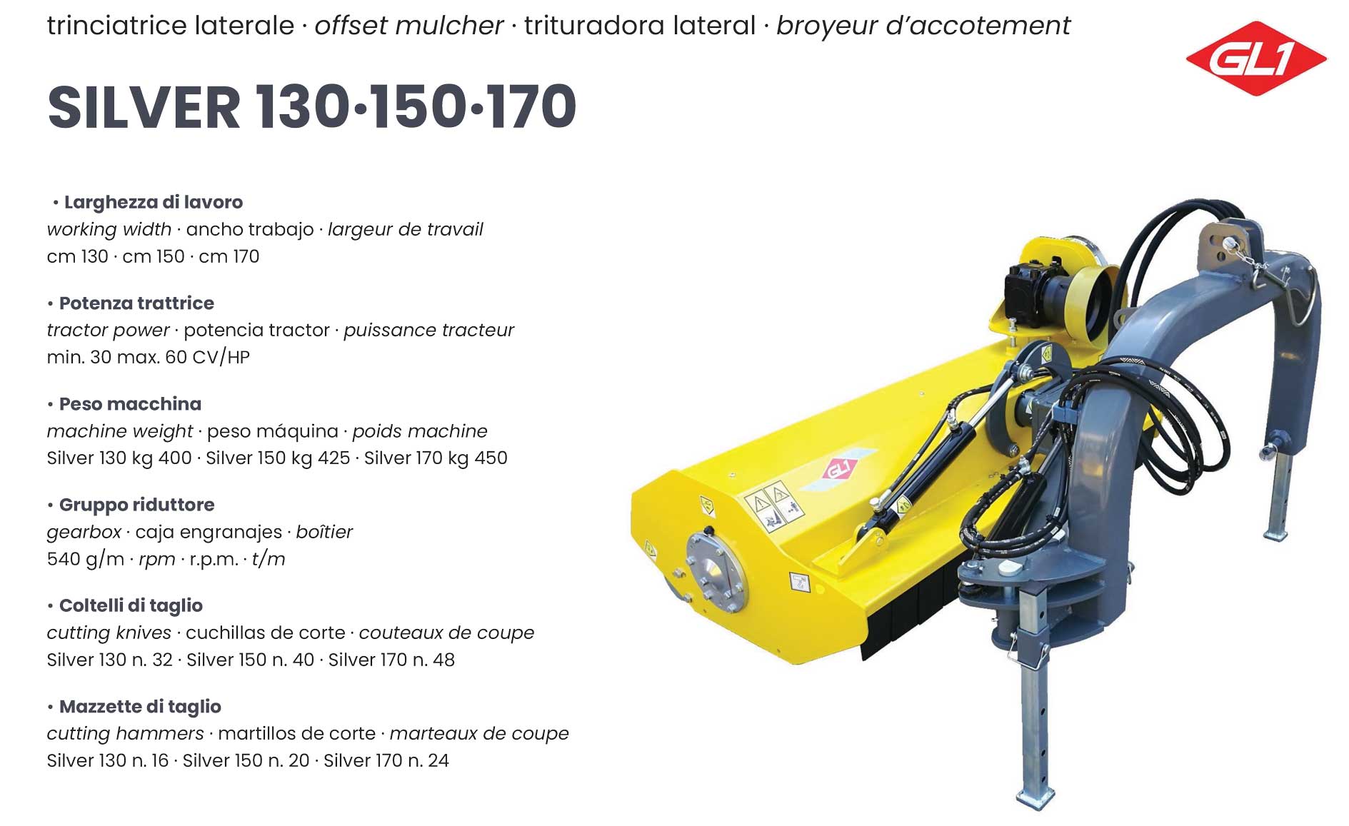 Trattori con potenza da/a: 30 ÷ 60 CV Larghezza di taglio: 130 – 150 – 170 CM Peso: 400 – 425 – 450 KG |