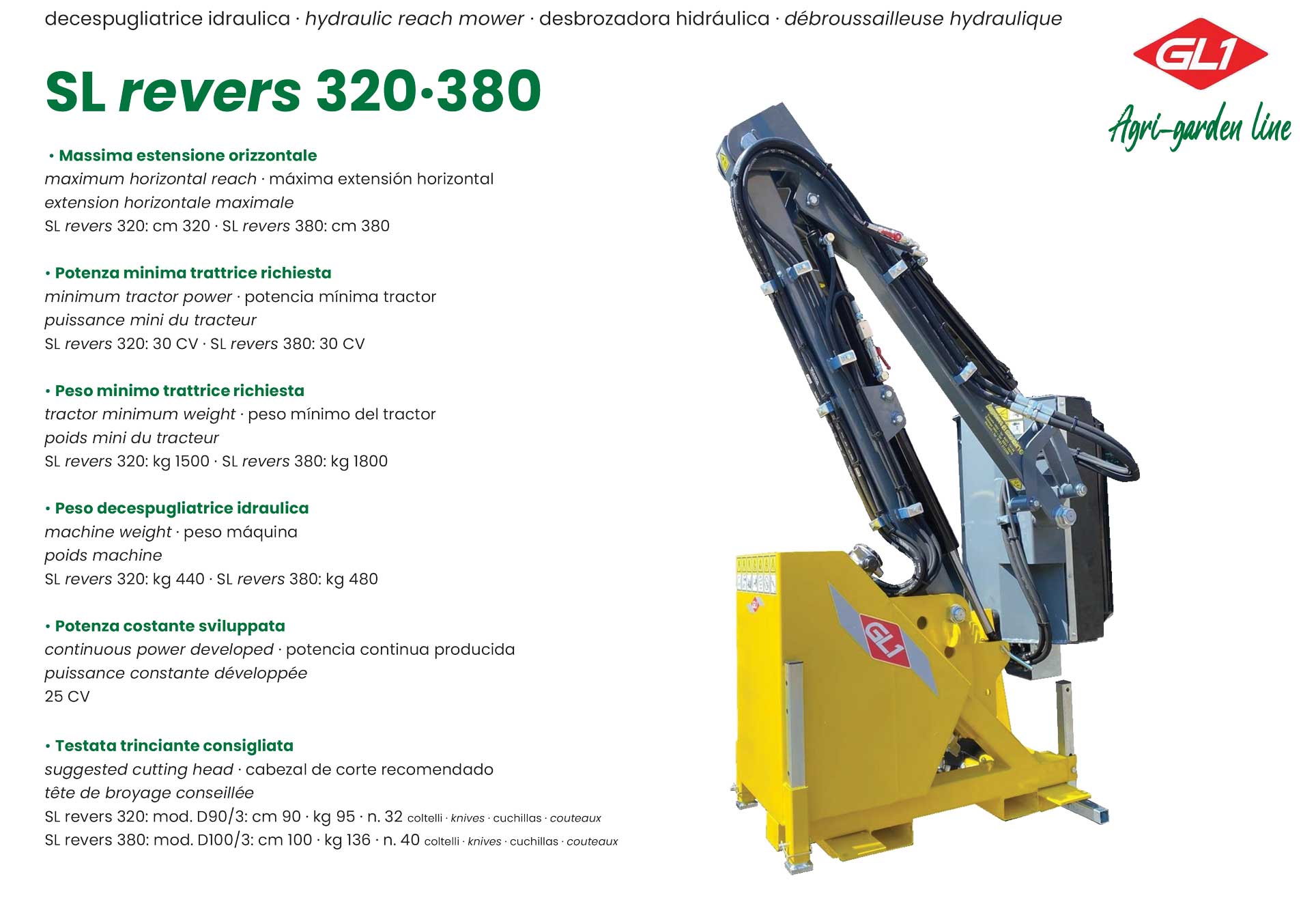 Trattori con potenza da/a: 30 CV Estensione massima: 320 – 380 CM Peso: 440 – 480 KG |