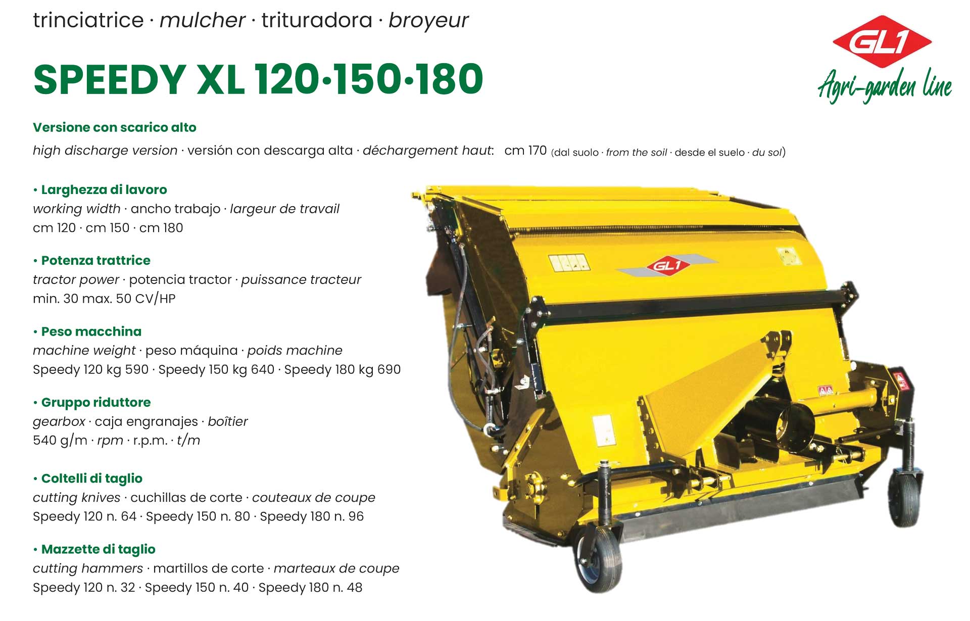 Trattori con potenza da/a: 30 ÷ 50 CV Larghezza di taglio: 120 – 150 – 180 CM Peso: 590 – 640 – 690 KG Gruppo riduttore: 540 g/m Coltelli di taglio: