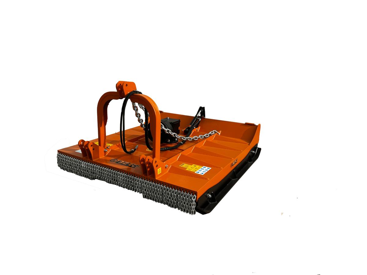 Trincia a catena per lo sfalcio dell'erba su terreni con un numero elevato di pietre. Può anche essere utilizzata per sminuzzare il materiale legnoso fino a 3 o 5 cm con la possibilità di raggiungere una velocità di avanzamento del trattore maggiore. Rispetto al modello TC/P, ha di serie il cofano idraulico. |
