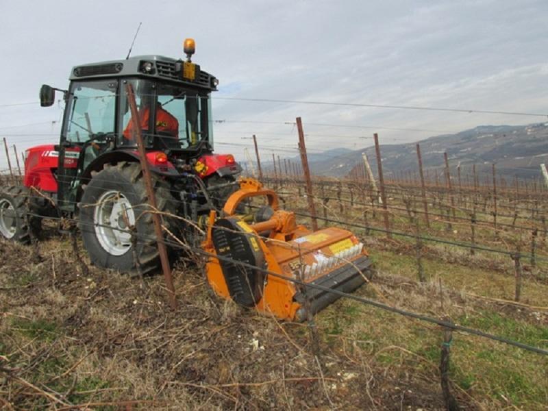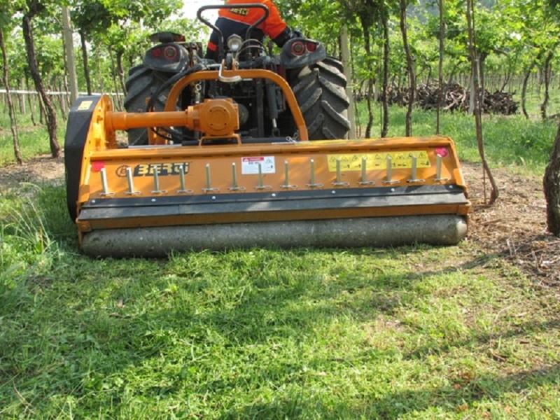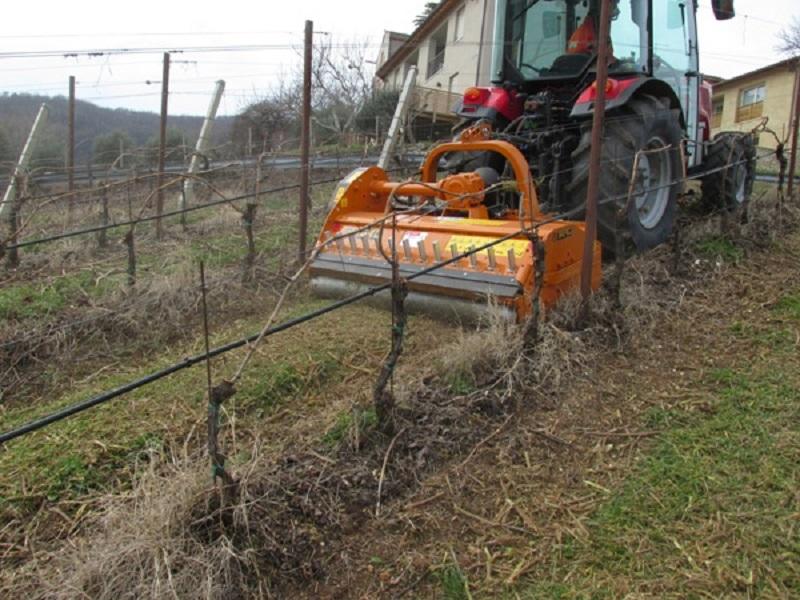 Trincia per vigneto e frutteto, adatta a trinciare erba, sarmenti e materiale legnoso fino a Ø 8 cm, da applicare a trattori con potenza compresa tra 40 e 110 CV. La trinciaerba può essere dotata di: