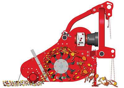 | Per un maggior affinamento del residuo, TIGRE può essere accessoriato con i denti di raccolta regolabili. Il residuo verrà trattenuto sotto al cofano, in modo da essere nuovamente frantumato fino ad una certa dimensione. Le due taglie maggiori presentano invece il kit convogliatore. |