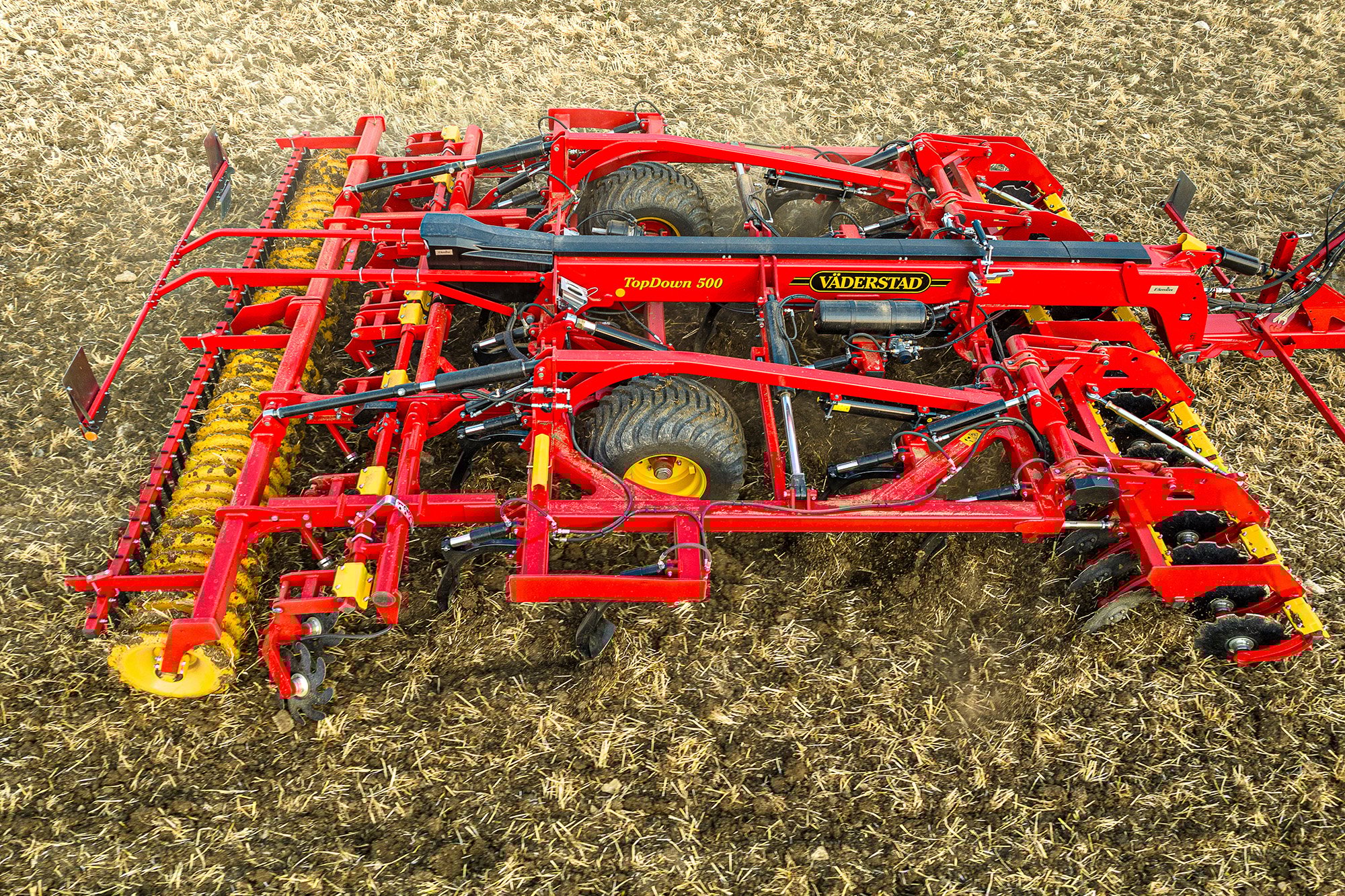 Il TopDown è un coltivatore multi-funzionale che combina nella stessa macchina un coltivatore a dischi molto intensivo con un coltivatore a tre assali molto robusto.