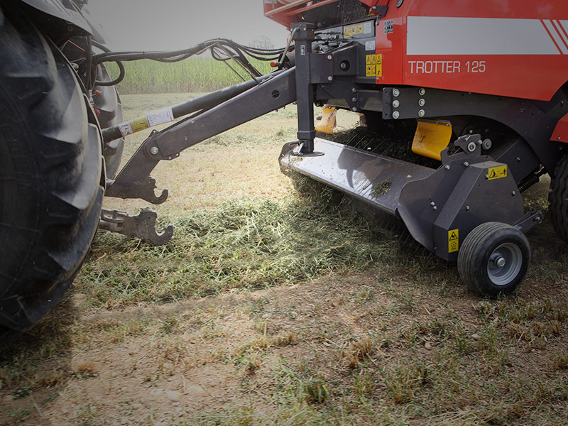 TROTTER 125 è il modello entry level delle rotopresse fisse a rulli in grado di riassumere semplicità d’uso ed elevate capacità produttive. TROTTER ha una meccanica robusta, con ingranaggi e perni dei rulli temperati: una camera da 18 rulli nervati in grado di formare balle dense e con forma regolare del diametro di 125 cm. Questa rotopressa è ben accessoriata con pick-up da 220 cm, oliatura automatica delle catene e la possibilità di scelta tra 3 sistemi di alimentazione.