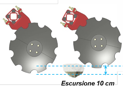 Regolazione meccanica del rullo posteriore Due ranghi di dischi dentati indipendenti Ø520 mm ammortizzati su silentblock Mozzi ad alta resistenza "Agrihub" (cuscinetti a doppia corona di sfere contrapposte, bagno di grasso a tenuta, senza manutenzione, tenute meccaniche a “cassetta”) |
