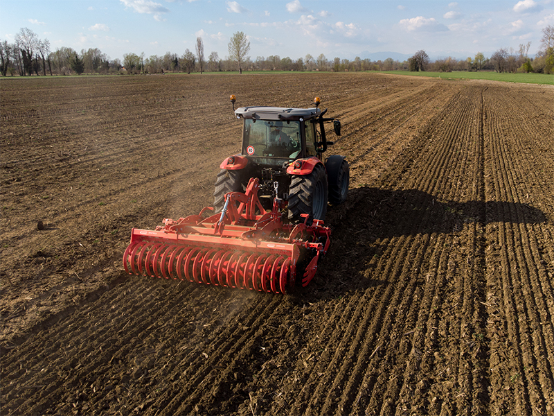 | La vasta gamma di rulli posteriori permette un perfetto pareggiamento del terreno. Oltre alla regolazione meccanica, il rullo posteriore può essere equipaggiato con la regolazione idraulica (a richiesta) che permette di agire comodamente dalla cabina del trattore. |